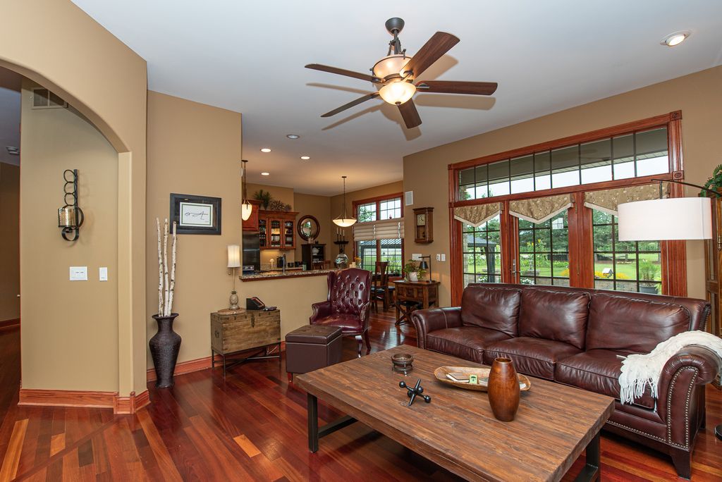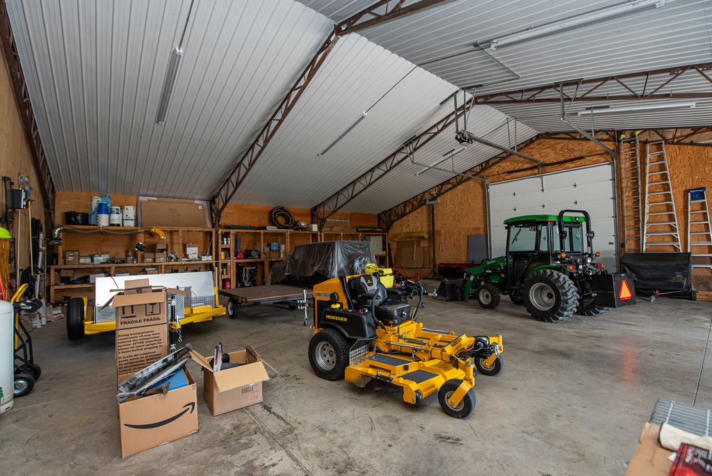Private 10 acre estate. 1 of a kind property w/home plus 80x60 custom out building. Main floor offers master suite & private office Features soaring c-lings ~8ft raised panel solid HW doors. All windows have wood blinds & fabric. Upstairs - 3BR/2BA PLUS bonus room. Finished basement incl *Theatre (equip stays) & Bar all w/heated tile floors. Entertain in style! Gorgeous brick patio land&lightscaping /HUGE outbldg has 3 OH doors perfect for large equip or toys. Complete home entertainment system with video and audio remote controls, Indoor and outdoor stereo speakers, true home theatre with projector and 10 ft roll down screen, full large wet bar with back cabinets and overhead and Accent lighting. Out building: 60ft X 80ft X 12ft eave, 3 overhead doors, 2 pedestrian doors. Steel primary framing, wood secondary framing, metal clad roof and walls, silicone White reflective roof coating, liner panels on ceiling, plywood walls, R 20 insulated, LED lighting, water and septic, filtration and booster pump, 200A electric service. Air compressor, welder receptacles, storage mezzanine, work bench with storage, Partitioned, concrete floors, water filtration and booster pump. Flag pole with night lighting, vegetation accent well lights, walkway lighting, Pathway lighting, security lighting. All exterior lighting either photocell or timer Controlled. Appliances: Double oven, island cook top with exhaust, refrigerator, microwave, washer, dryer (front load) additional refrigerator in lower level, wine cooler and refrigerator at wet bar lower level. Attached 3 car plus garage with tiled floor, kitchen style cabinets, and deep sink. Fireplaces: Living room and family room (natural and gas log) Heat/fuel: Natural Gas, two furnaces and air conditioners, hot water generator and radiant floors in lower level and attached garage Lot Description: Paver brick walkways, multi level paver brick patio with hammock and swing stand, flower beds all around the home and remote in yard, mature landscaping. Sewer: septic system Water: well dual service, home and out building, whole house filtration, pressure booster, saltless softener. Electric service: 400A, 200A to home, 200A to out building, 36KW (150A) backup generator, separately housed with automatic transfer switches. Property is contiguous to large wetland (permanently undevelopable) with an Abundance of wildlife including deer, rabbits, squirrels, birds, etc. etc., Sharp Road dead ends at this property, no through traffic. Crop lease in effect for 6.5 acres of the ten acre parcel, rotating corn and Beans annually. Recent Improvements: New roof, 20 year, 120MPH wind rated, architectural shingle, Sept. 17.2013 New well, 20GPM installed 5.20.21 Recently painted trim work. New aluminum patio room 2020 Water: Must be seen to be fully appreciated. Meticulously maintained and in excellent condition.. Property will be shown by appointment only to qualified buyers. Too Much to Mention!! Pre approval loan letters are required with any offer Occupancy will be at closing and schedules can be discussed following an acceptable offer. Call for private tour.