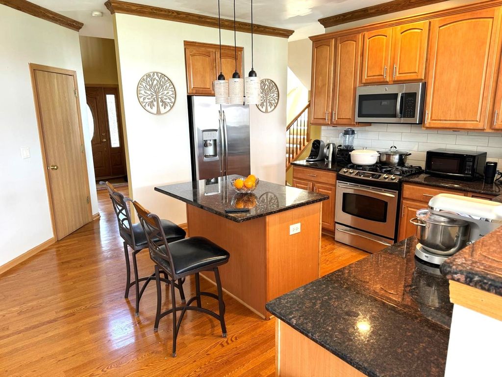 BEAUTIFUL 4 bdr and 2.1 bath house, with amazing view and - gorgeous inside and out and located in a quiet, private cul-de-sac on 1/3 acre lot. Enjoy quiet living but only minutes away from Rte 59 and Caton Farm Rd shopping, restaurant, and other amenities along Rte 59 corridor. This 2-story home is highlighted by crown molding and real hardwood floors that flow from the foyer to the living and dining room to a spotless kitchen open to a breakfast nook and family room with a custom stone wall with fireplace. This open floor plan places the kitchen in the heart of the home with enough cabinets and counter space for any cook to be organized and happy. The sun-filled breakfast nook with large windows and sliders allows access to a sprawling concrete stamped patio and overlooks a pond! All this is completed with a newer roof & gutters (Sep. 2018) & new A/C (2023). Make it your dream home!!!