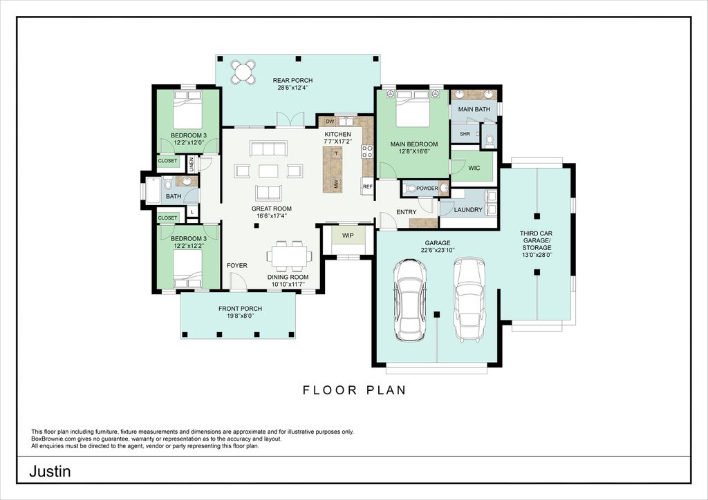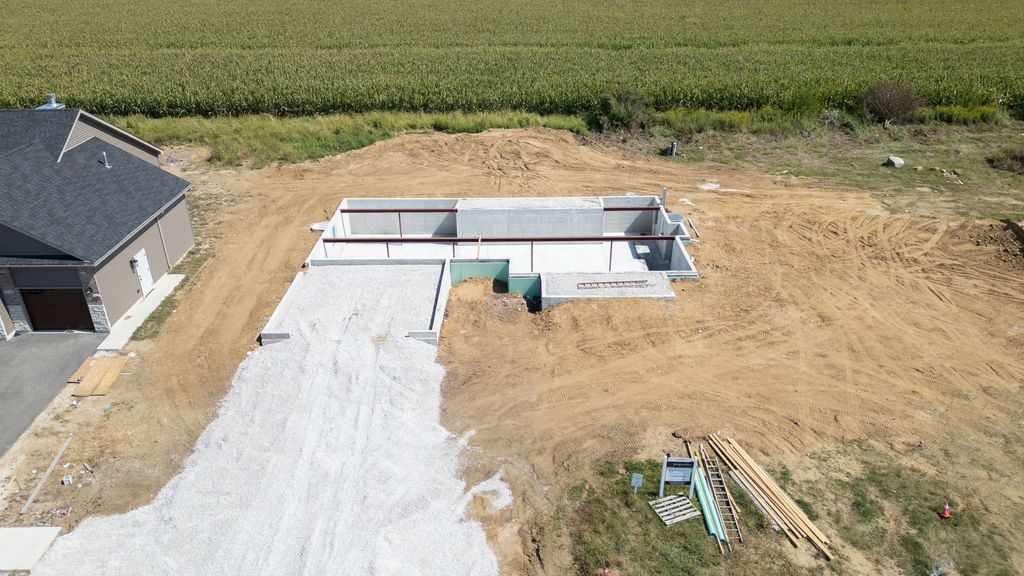 UNDER CONSTRUCTION - SEMI- CUSTOM HOMES! Welcome to the {Justin} on Lot 13 at PRAIRIE FARMS; Wilmington's newest single-family community featuring 43 new, semi-custom residences that offer stunning curb appeal, flexible living spaces, and beautiful designer finishes throughout! The modern-farmhouse design offers a beautiful front porch welcoming you & your guests. The favored open-concept floorplan features impressive, vaulted ceilings and split bedrooms. The kitchen will be finished with sleek, natural stone countertops, new stainless steel appliance package, and walk-in pantry. The adjoining Dining Room & Living Room offer ample & flexible use of the space, especially when entertaining. The rear patio will offer beautiful Easterly sunrise views of majestic farms & rolling fields, and the front porch will host stunning sunset views to the West. The guest bathroom is nestled off the hallway for privacy. The primary-bedroom suite features a walk-in closet, en-suite bathroom finished with a tiled shower, double bowl vanity, and linen closet. Two additional spacious bedrooms offer ample closet space. The hall bathroom is equipped with double bowl vanity. Main level Laundry Room. Additional home highlights include an oversized 2 Car attached garage, full basement with 2 oversized Egress Windows, roughed-in plumbing in the basement, asphalt drive, decorative light outlet within the soffit, Anderson windows, recessed lighting, and much more! Each home is thoughtfully designed and proudly built to become a beautiful, energy-efficient, and serene living space that can be customized for various lifestyles and entertainment needs. Homes are equipped with energy efficient building materials, modern appliances, and smart home synchronizing capabilities for the homeowner's comfort and convenience. 2.5 Car Garage. Digital rendering and floor plan is used for concept purposes only, actual feather, plans and pricing will very. **Phenomenal Buyer Incentives! Inquire for more details!** Estimated occupancy date is March 2026.