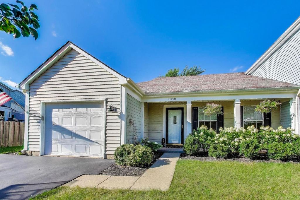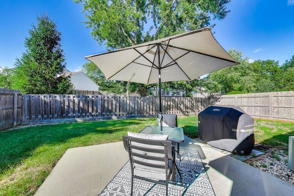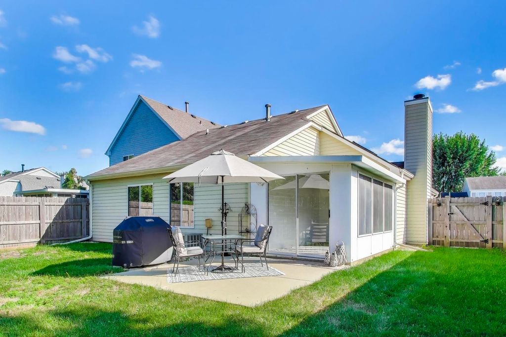 Rarely available! A RANCH duplex in Cambridge Country with NO HOA's and a 3-SEASON SUNROOM that sits between the family room and the large patio. At the front door, you're welcomed with a new front entryway full-view storm door (2020) and new front landscaping with gorgeous hydrangeas and boxwoods (2023). The home is freshly painted in a neutral color and is in move-in condition. The first thing you notice when you open your front door is hardwood floors in the foyer with large double closets, cathedral and vaulted ceilings, a spacious and bright Living Room that flows into the Dining Room with a new chandelier (2025), as well as recessed lighting above and new hardwood laminate flooring (2025). Once in the Kitchen area, you'll find solid oak cabinets, newer Whirlpool kitchen appliances, a laundry closet, and you can't help but notice the open floor plan that extends into the Family Room, featuring skylights, a lighted ceiling fan, and a stunning custom stone fireplace that can be viewed and enjoyed from both the family room and the kitchen. Spacious main bedroom with new carpeting (2025) with a walk-in closet and recessed lighting. The Second bedroom also has new carpeting (2025), a large closet, and recessed lighting, along with plenty of natural light. Updated full bathroom (2017) with ceramic tile flooring. The convenient location of the entry from the Garage into the Family Room is a definite plus of the floor plan for this home. Double attic storage. Newer furnace and smart thermostat (2019), and extra-large gutters. New flooring. All around fenced yard has plenty of space for children's playsets and pets, along with a patio for entertaining and grilling. The neighborhood includes a nature pond with a walking path and several parks. Please note that the washer and dryer do NOT convey with the purchase. The property has been well-cared for, and is being sold "As Is".