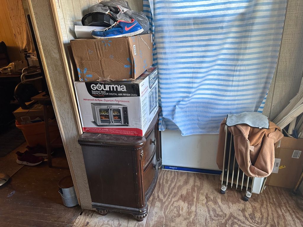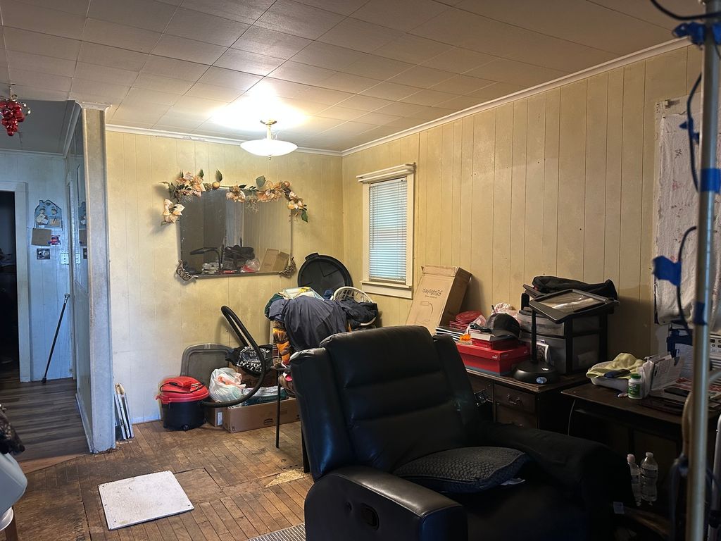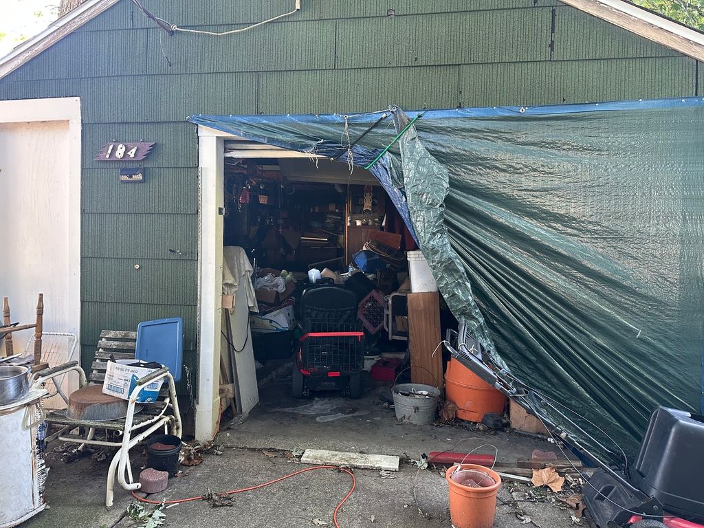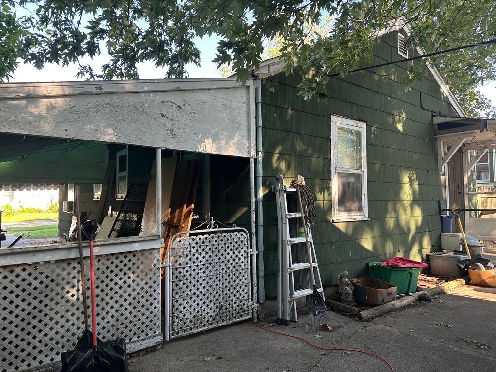 Being sold as is. The garage measures about 16 x 21.5 and there is a building attached that was for chickens previously. currently is within the backyard fencing and is used for storage. The unheated front porch is not considered in the sq feet.
