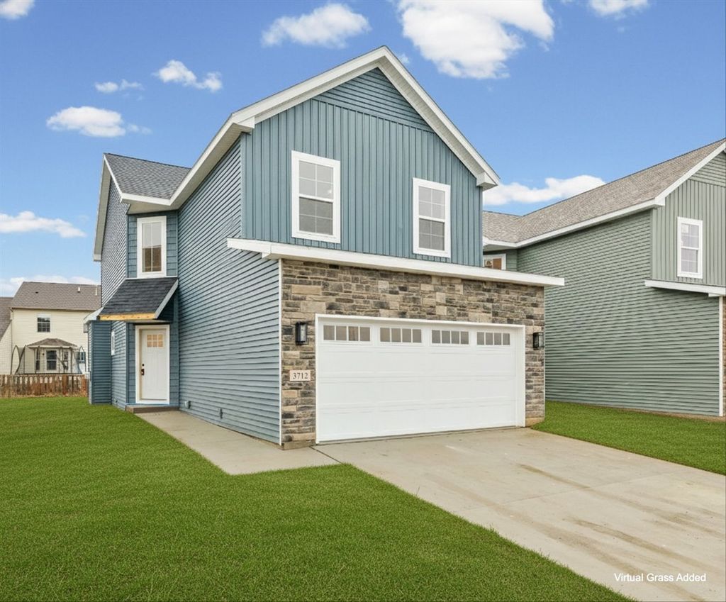 Just completed and ready for its first owner, this brand-new construction is located in the highly sought-after Boulder Ridge subdivision of northwest Champaign. This well-designed two-story home delivers modern living with quality finishes throughout, offering an exceptional blend of style, function, and value. The main level features a bright, open-concept layout with a spacious kitchen and island, a cozy great room with fireplace, and a dedicated front study, perfect for a home office or quiet retreat. A convenient mudroom with built-in drop zone is located just off the garage, ideal for everyday organization. Upstairs, the home offers a private primary suite with a walk-in closet and full bath, additional bedrooms, a second full bathroom, and second-floor laundry for added convenience. Trendy layouts are paired with warm natural tones, white cabinetry, and upgraded light fixtures, creating a clean, modern aesthetic throughout. A two-car garage adds functionality and storage. Residents of Boulder Ridge enjoy access to Sunset Park, featuring basketball courts, tennis and pickleball courts, walking trails, soccer fields, a skate park, playground, pavilion, and dog-friendly spaces. Close to bus lines and just minutes from the University of Illinois, this home delivers luxury living while remaining one of the most affordable new-construction price points in the Champaign area, built with quality materials and exceeding local energy codes.