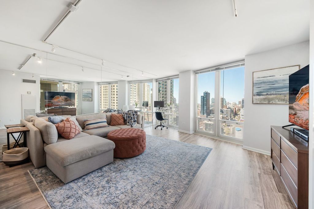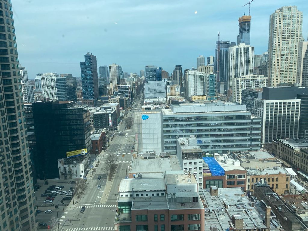 Wood floor through out. BEAUTIFULLY MAINTAINED RARE SPACIOUS 1BD/1BA W/ IN-UNIT LAUNDRY CONDO LOCATED IN LUXURY RIVER NORTH NEIGHBORHOOD. INVESTMENT FRIENDLY BUILDING.FEATURES GRANITE COUNTER TOP BREAKFAST BAR W/ OPEN KITCHEN & WALK-IN BEDROOM CLOSET AND NEWLY COMPLETED GORGEOUS WOOD FLOOR. THIS IS A FULL AMENITY BLDG W/ 24 HR DOORMAN,POOL,FITNESS,TENNIS ETC. CLOSE ACCESS TO THE RIVER, MAG MILE, PHARMACY, SUBWAY, FINANCIAL DISTRICTS & NIGHT LIFE. GARAGE PARKING AVAILABLE . UNIT IS RENTED TILL June 30th 2026. One storage unit is included in the price.