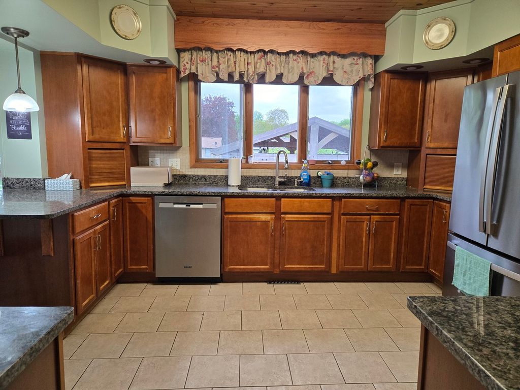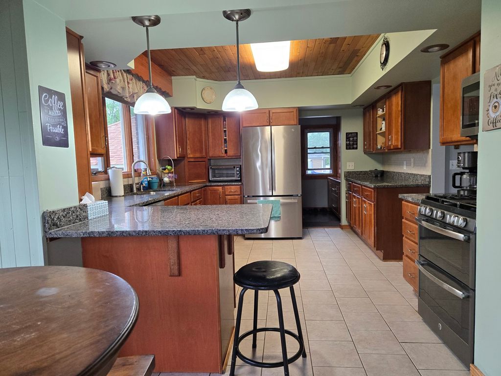 One of a kind property with 2 homes. ALL Brick 2 story has been Beautifully updated and maintained, in keeping w/ the Historical Character of the Home. Guest enter into a bright and sunny all season front porch that's a perfect space to enjoy your morning coffee. Double French Doors lead into the spacious living and dining rooms. You'll Love the glowing oak floors and original oak built-ins that separate the rooms. Woodburning fireplace to cozy up to in the winter. Main floor den with a half bath. Kitchen was updated in 2007 with loads of cabinets and granite counter space and sunny eating area. All stainless appliances stay. Upstairs you'll find 3 bedrooms and 2 full, updated baths. Finished basement with 2 finished rooms and a half bath. Outside the back door is a large stamped concrete patio with a gazebo which is a great place for a BBQ or any meal. New, oversized concrete driveway leads to a Brick 2 car garage. 2003: roof tear off and new 35 yr. roof and FP chimney rebuilt. 2005: House tuckpointed front and sides. 2021: new Hi-efficiency furnace and new A/C. 2022: water heater. 2024: Softener and Radon mitigation. 2025: washer and dryer, reverse osmosis. Newer 200amp electric, updated plumbing with copper and PVC, Thermopane windows throughout. +PLUS+ there's a 2 Bedroom home for a rental or for related living. Main floor living and kitchen: 19x15, bedrooms: 13x10 13x9. Enclosed porch: 11x7, decks: 13x12 and 12x8. Separate 100amp electric. Electric heat. 2013: Bath. 2020: Kitchen. 2024: Roof, water heater, main floor subfloor and laminate, deck. $800 month lease thru April 2026. 2 addresses with 1 PIN. All of this on .7 Acre homesite.