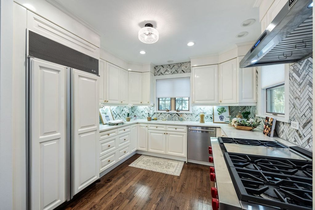 Fully Renovated 6BR 5.5BA Classic Home in Unbeatable East Kenilworth Location. This Elegant home sits on a large lot on one of Kenilworth's most serene streets. FIRST FLOOR: Elegant LR w/ Thibault Grasscloth Wallpaper & Custom Solid Wood Built Ins, Custom Handmade Mosaic Entry, Traditional DR w/ Brick Fireplace. Kitchen boasts both a Butler's Pantry and Prep Station, Quartz Countertops and herringbone Italian Calacatta Marble backsplashes & features: A full eating area & a counter bar eating area too, a 30" Subsero combo fridge/ freezer, Larger pantry, Two double under-mount cast iron sinks, two Bosch SS D/W & two Garbage disposals, One gas oven, one electric oven, one 30" SS microwave w digital displays. A 48" Wolf gas Rangetop, 4 gas burners, 1 electric burner Grill Cook Top for the breakfast area, A white Countertop and blue Marble countertop for the breakfast area & an under & inside cabinet lights. Eat-In Breakfast Nook with space for a larger table & 4 chairs w/w/skylight overlooks sunny large backyard & over counter bar seating area. A bar area w liquor & glass cabinet, an under-counter shelf refrigerator, Ice maker & a beverage refrigerator. Attached 3 Garage with Massive Storage availability. Superior Flow for casual gatherings and entertaining & an Extra 3 Season Porch. SECOND FLOOR: 4 BRS each with En Suite BA, each with thoughtful design. PRIMARY Bedroom w/ HIS/HERS BAs and Closets. Make up bathroom w/ carrara marble & a seat-in area, floor-to-ceiling custom mirror, full bathroom with glass shower doors. All Baths completely remodeled with Italian marble and hand-poured tile / Restoration Hardware Fixtures. Second Floor Laundry with Large Linen Closet and Brand New LG Machines. THIRD FLOOR: 2 Spacious Bedrooms and Full BA with Stone Fixtures and Calacatta Tile. BASEMENT - Completely Renovated Basement with New Perimeter Drain Tile and Sump Pump with Front Yard Pop Up Emitter Water Control System. Full Large Laundry Room and Finished Rec Room Perfect for an additional Play Room, Office, or Exercise Room. New attached 3-car garage. Large lot and professionally designed landscaping-walking distance to Sears (JK-8) and New Trier. Showings Start 5/14!