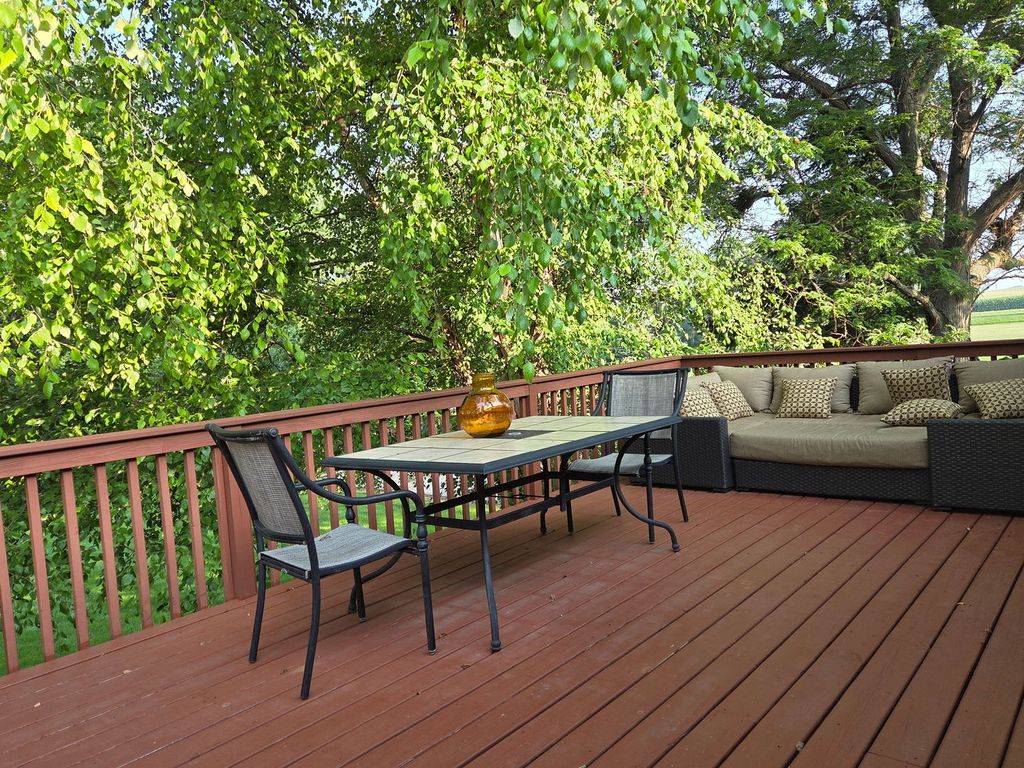 11920 Hunterston Dr, is a spacious and beautifully designed ranch-style home offering approximately 3,800 square feet of living space. Built in 1999, this residence features 5 bedrooms and 3.5 bathrooms, situated on nearly an acre of land. The open-concept layout includes hardwood flooring on the main level and a master suite with an atrium door leading to a deck. The fully finished lower level boasts additional bedrooms, a full bath, a mini kitchen, a recreation room, and an office, all with walk-out access to a cement patio and a well-maintained yard.