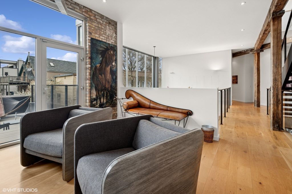 *FOR FULL PHOTO GALLERY (100+ PICS), VISIT THE VIRTUAL TOUR LINK ABOVE* // Welcome to Leavitt House - a hidden gem of architectural brilliance nestled in the heart of Bucktown. Situated on a rare corner lot adjacent to the 606 Trail, this extraordinary single-family residence spans nearly 9,000 square feet and is unlike anything else in the city. Originally a warehouse, this four-level home has been masterfully transformed by the renowned Miller Hull Partnership in collaboration with Ranquist development into a sun-drenched, gallery-like sanctuary. Every inch of this home is curated with intention. Soaring atriums flood the space with natural light, highlighting exposed brick, striking steel construction, rich wood beams, and walls of windows. Designed to be both livable and unforgettable, the home offers the rare combination of expansive scale and thoughtful warmth. The entertainer's kitchen is a showstopper - featuring dual oversized islands, premium Viking and Wolf appliances, layered stone finishes, a marble backsplash, and a dramatic two-story sliding glass wall that opens to your private outdoor oasis. Step outside to a fully redesigned outdoor retreat - complete with a full chef's kitchen, built-in grills, overhead heaters, outdoor TV, and lounge areas - creating the ultimate setting for year-round entertaining. With 5 bedrooms, 3 full bathrooms, 2 half baths, a media room, wine cellar, and private elevator, every detail reflects exceptional design. The spacious family room provides comfort and separation, while tree-lined views from nearly every window offer a serene escape in the heart of the city. Upstairs, the primary suite is a dream - complete with dual walk-in closets, a sleek wet bar with fridge drawers, a private terrace, and a spa-caliber bath featuring heated floors, a steam shower, dual vanities, and elegant recessed mirrored cabinetry. Additional highlights include a full-size laundry room with ample storage, a state-of-the-art Control4 system for lighting, sound, and media, automated shades throughout, high-end designer lighting, a brand-new tear-off roof, and a two-and-a-half-car attached garage. All of this in a coveted Bucktown location - steps from acclaimed restaurants, boutiques, cafes, parks, yoga studios, and transit. With the 606 Trail at your doorstep, this home offers the rare blend of suburban tranquility and vibrant city living. Leavitt House is not just a home - it's a lifestyle. A one-of-a-kind masterpiece in one of Chicago's most dynamic neighborhoods.