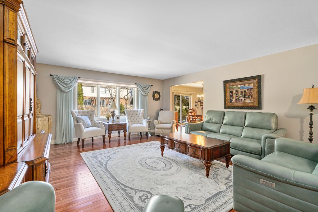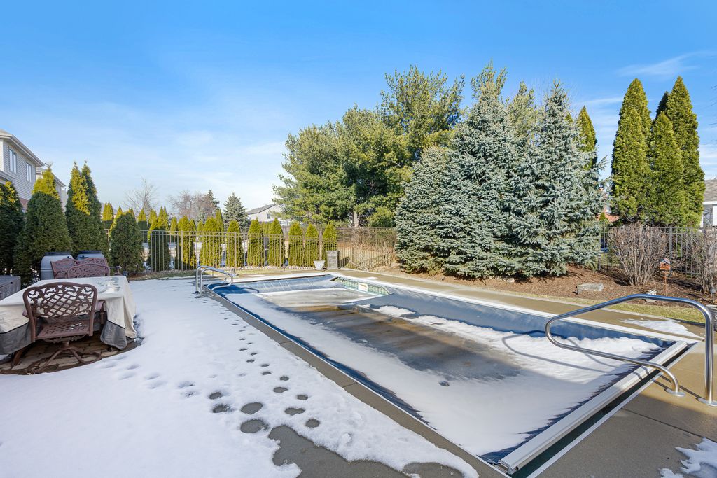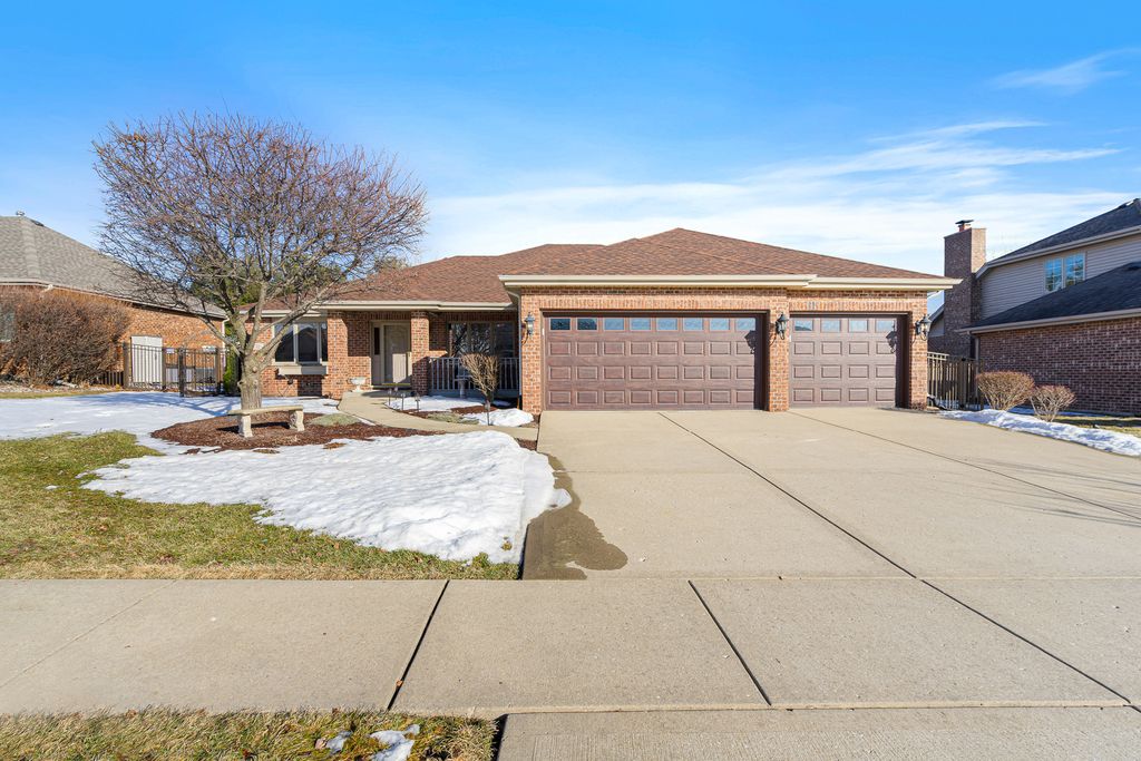 Welcome to this beautifully maintained, all-brick true ranch located in the highly desirable Crystal Springs Subdivision. From the moment you step inside, you'll appreciate the pride of ownership and impeccable care throughout. Gleaming hardwood floors flow through the foyer, formal dining room, and sun-drenched living room, creating an inviting and elegant atmosphere. The heart of the home is the stunning updated kitchen, featuring antique white cabinetry, a custom tile backsplash, granite countertops, and sleek stainless steel appliances-perfect for both everyday living and entertaining. Adjacent to the kitchen, the spacious family room overlooks a private, extensively landscaped backyard oasis. Step outside to enjoy a fully fenced yard with an irrigation system, a paver patio, and a 9-foot in-ground swimming pool-ideal for summer gatherings. A charming shed provides extra storage, while lush greenery and manicured beds add to the outdoor appeal. Retreat to the large master suite offering a luxurious private bath with a soaking tub, separate shower, water closet, dual vanities, and a walk-in closet. Two additional generously sized bedrooms and a full bath provide plenty of space for family or guests. The finished basement expands your living space with a large recreation room and abundant storage. Additional updates include a brand new roof installed in 2025, sump pump and water heater 2026, giving you peace of mind for years to come. This move-in-ready gem offers comfort, style, and unbeatable amenities-all in a sought-after neighborhood. Don't miss your opportunity to make this exceptional home yours!