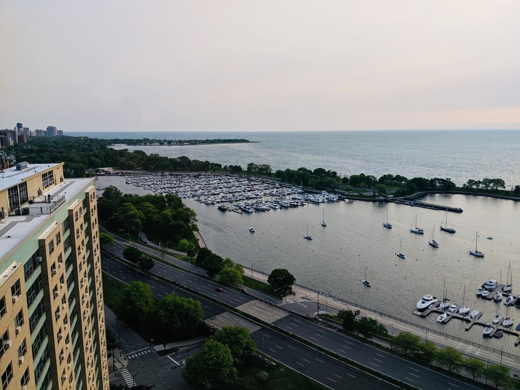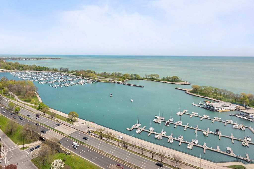 Stunning high floor unobstructed views of Belmont Harbor at 3150 N. Lake Shore Drive! Majestic north views of Lake Michigan and the lakefront, plus south to downtown Chicago - don't miss this spacious 2 bedroom/2 bath at this picture-perfect locale with different water perspectives from both sides. This iconic and treasured Midcentury building is one of Lakeview's shoreline's finest. 3 separate elevator banks and only 2 units per floor establishes a very discreet lifestyle and creates a calm and peaceful atmosphere. Unit features tile floors, incredible closet/storage space, double closets in primary bedroom, generous room sizes, white and stain-less steel original retro appliances, separate dining room area, huge living room, detailed built-ins for an office or general accommodations and amazing views from each window. Relax by the outdoor pool and sundeck or gaze into the sunset with the stellar lake, city or west views. Grilling atop this splendid building is unmatched and a great way to wind down. Full amenity building: 24 hr door staff, onsite manager and engineer, fitness center, kids playroom, hospitality room, business center and resident library. No pets, onsite valet resident and guest parking, bike and additional general storage available. 2 parking spaces offered to rent - so accommodating -- one of the best heated parking garages in the city! Such close proximity to enjoy the lake front, Belmont Harbor, Lake Michigan Path, Diversey Driving Range, Waveland Tennis Courts and Wrigley Field. Shop on Broadway, Clark or Halsted at many grocery stores, stop for lunch or dinner at one of many noted restaurants and take the bus right outside your door to the museum or work. Some of the most prestigious schools are close by and Navy Pier Fireworks are in the distance. Your fortress in the clouds over the water awaits you!