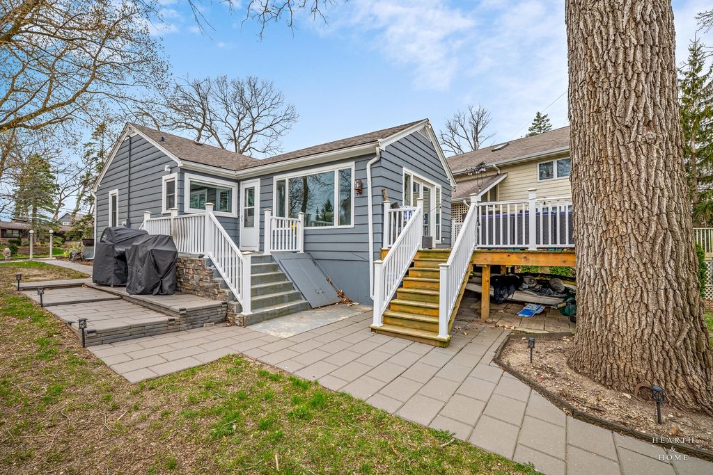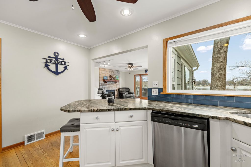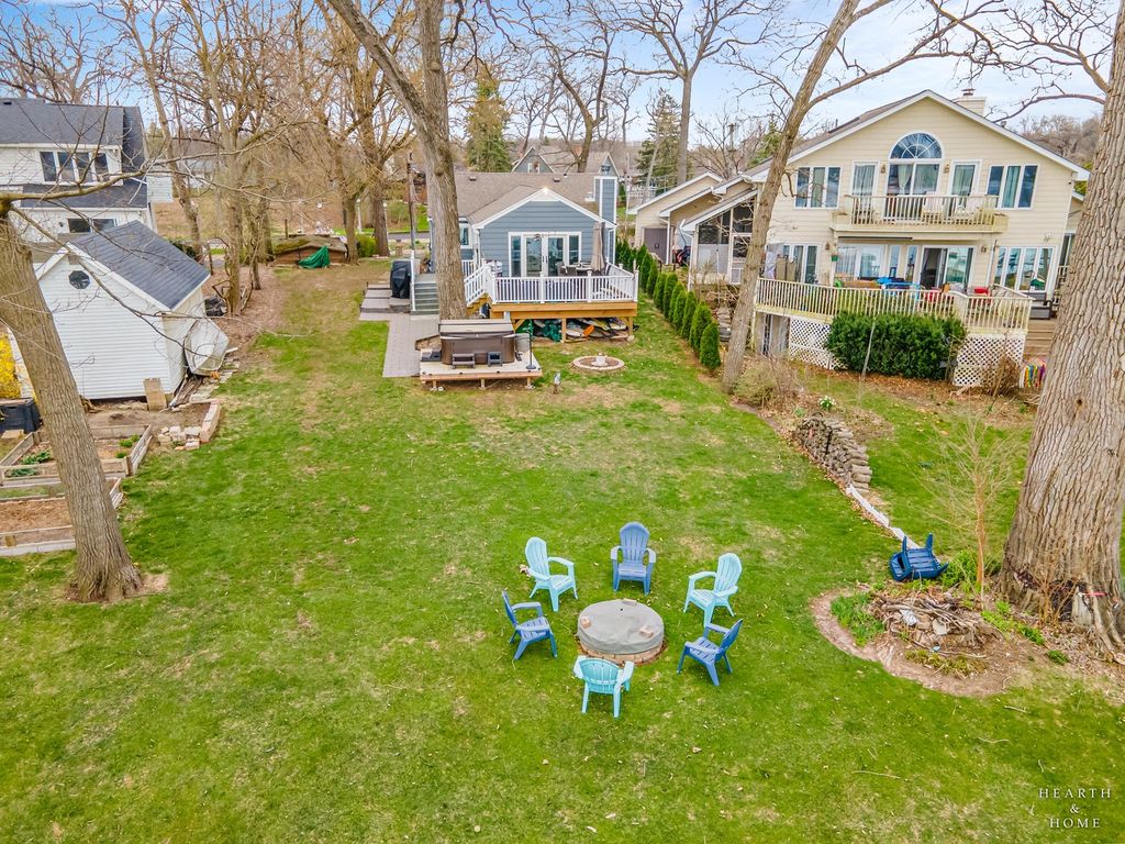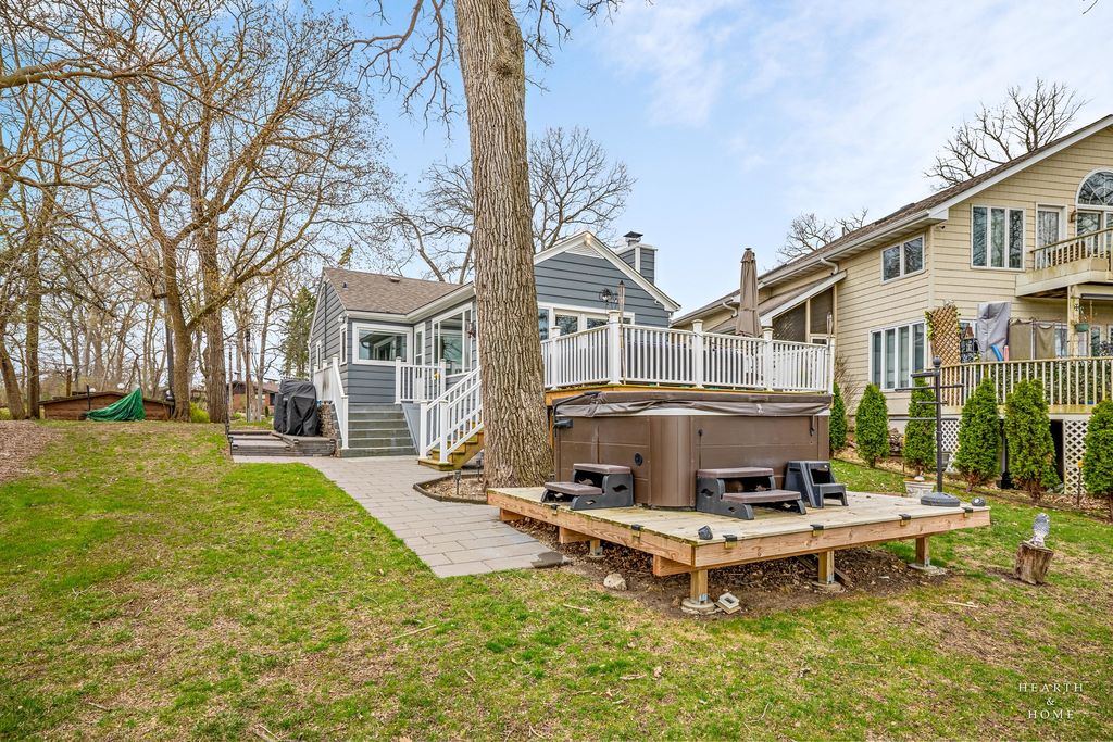 All you need to do is pack your toothbrush, this fully furnished lake house in the best location on the Chain is available now! This 2100 SF home has 3 bedrooms, 2 bathrooms and is fully updated and ready for its next owners. The main level has 2 bedrooms, an updated bathroom, a spacious living room with fireplace, and a fully updated kitchen with brand new counter tops and appliances! The large separate dining room is perfect for family dinners or game nights. Downstairs you will find another extra large bedroom, a family room with sliding glass doors, a large laundry and storage room, and a huge walk in closet. The most important part of any lake house is the location, and this one is the best of the best! Meyers Bay of Pistaqua Heights is known for private roads, cobblestone walls, pillars, and quiet scenic views. You do not need to worry about noise or boat traffic here, just calm sunsets at your own private retreat. The property features a large parcel of land with a big deck, brand new lake facing hot tub, fire pit area, and a private pier. Solar powered boat lift with canopy and 2022 Bennington LTFB 300 hp with transferable warranty available for sale as well. As if all of that isn't enough, the HOA includes access to a sandy beach with fire pit and boat launch! Make this your home just in time for summer!