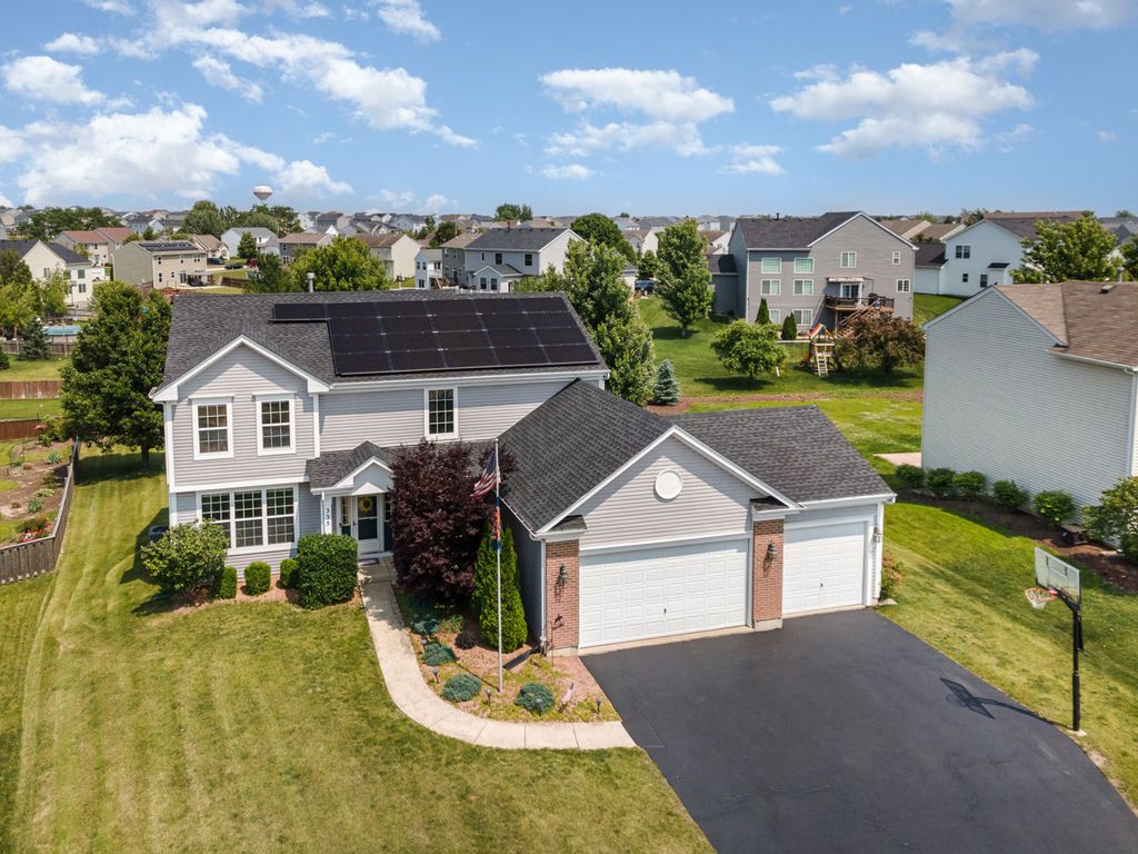 WINDETTE RIDGE SUBDIVISION - SPACIOUS 2,487 SQ FT HOME with 4 BEDROOMS, 2.5 BATHS, 3-CAR GARAGE, FULL UNFINISHED ENGLISH BASEMENT. Enjoy outdoor living with a LARGE BACKYARD, ELEVATED DECK, BUILT-IN FIREPIT AND POOL - perfect for entertaining or relaxing. Step into the two-story foyer, which leads you to the formal Living and Dining Room or upstairs. Just around the corner is the heart of the home - the Kitchen, Breakfast Room and Family Room...with direct access to the deck, pool and backyard oasis! The Family Room features multiple windows, a striking stone fireplace with wood mantle, and an adjacent flex room-ideal for an office, music room, reading nook, or gaming space. A first-floor laundry/mudroom connects conveniently to the garage. Upstairs, the Primary Bedroom offers a tray ceiling, walk-in closet, and en-suite bath with double sinks, soaking tub, and separate shower. A full hall bath with double sinks serves the three additional bedrooms. The English basement is filled with natural light-ready to be finished to suit your needs! There are walking trails around the pond and a park / playground within the subdivision. Conveniently located on the south side of Yorkville, just off of Rt 47 with easy access to Rt 71 (Oswego or Ottawa), Old Downtown for restaurants or further north to Rt 34 where you can find shopping and entertainment. UPDATES NEW SINCE PURCHASED: Water Heater & Fresh Interior Paint in several rooms (2025) * Roof & Pool Pump (2024) * Pool Liner (2023) * Solar Panels (see lease agreement) * Hardwood flooring (Brazilian Cherry) on the first floor * Granite countertops with a stone backsplash in Kitchen and Baths * Exterior repainted * Extended the back deck (Trex) and added deck firepit, and the above ground pool with retaining wall and landscape bricks * Added blower on the interior fireplace * Wash Machine * Landscaping * Resealed driveway * Wood Shelves and pull-down staircase in the garage. Easy to show...come see it for yourself!