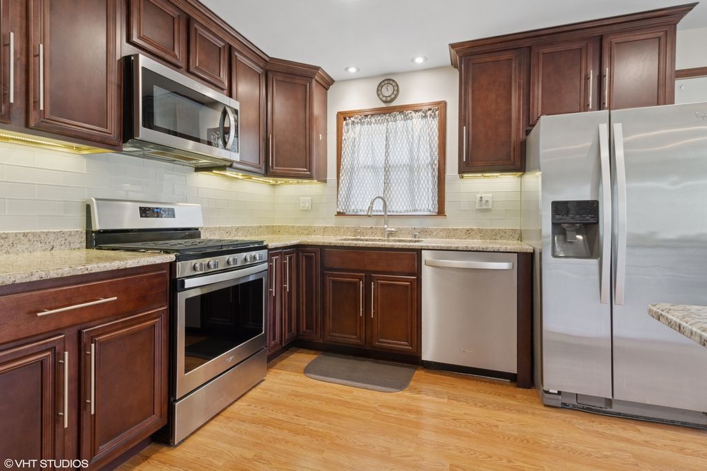 Step into this beautifully maintained brick split-level home featuring 3 bedrooms, 2 fully renovated bathrooms, and a list of modern updates. The main level boasts a bright, semi-open layout with stunning wood flooring. The updated kitchen has granite countertops, stainless steel appliances, and a spacious island, perfect for cooking and gathering. The finished Walkout-English basement offers a cozy wood-burning fireplace, a renovated full bathroom, and a convenient laundry area. Upstairs, you'll find three generously sized bedrooms with hardwood floors and another updated full bathroom. Enjoy the outdoors on the patio in the newly landscaped, fenced-in backyard- ideal for entertaining. Great location, close to shopping and restaurants. Plus, it's only a 10-minute drive to the amazing Brookfield Zoo!