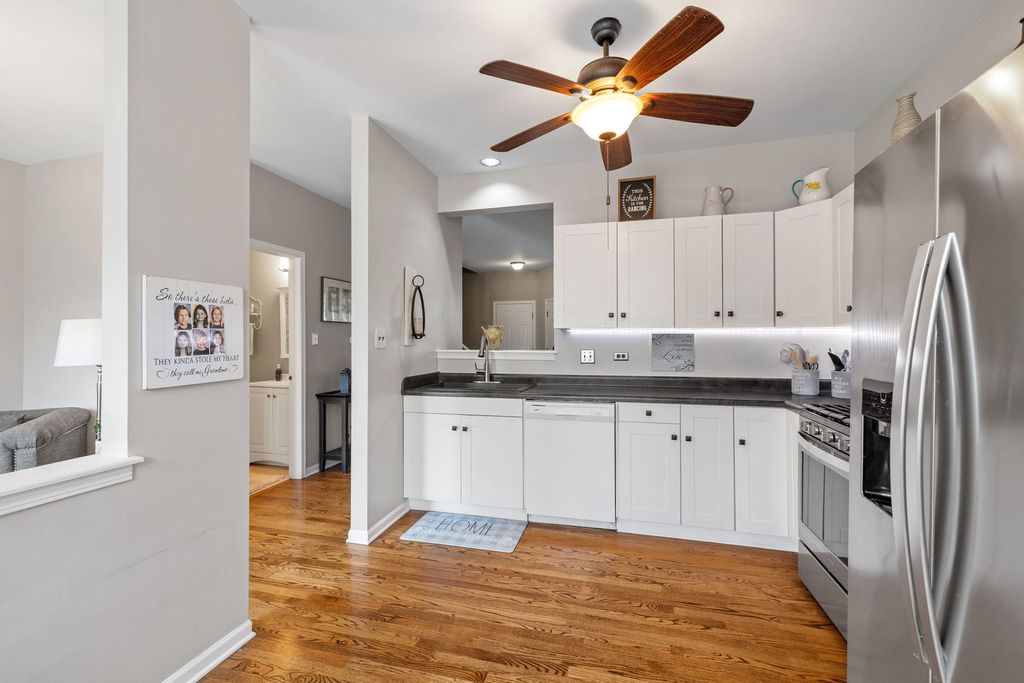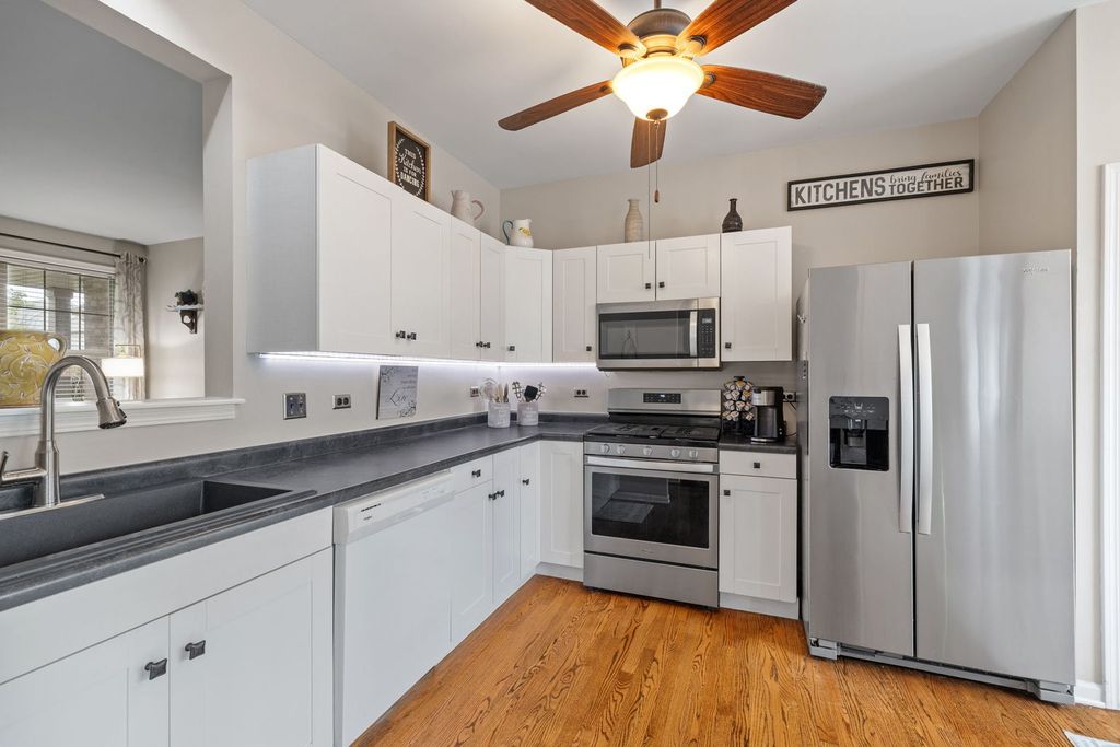 Impeccably maintained and thoughtfully updated, 9051 Mansfield Drive offers the perfect blend of function, comfort, and style. This 3-bedroom, 3.5-bath townhome is quietly situated in one of Tinley Park's most convenient locations-just minutes from shopping, dining, schools, Metra, and major highways. Inside, the remodeled kitchen (2019) stands out with its soft-close cabinetry, under-cabinet lighting, granite single bowl kitchen sink, stainless steel appliances (2020), and generous storage-including two pantries. The layout opens into a spacious living area with refinished hardwood floors and abundant natural light. A separate dining space-currently used as extended living-adds flexibility to suit your lifestyle. Upstairs, you'll find three well-sized bedrooms, including a serene primary suite with private en suite bath. The updated first-floor powder room (2024) and basement full bath (2024) provide fresh, modern convenience. The finished basement offers additional living space ideal for movie nights, a home office, or guest suite. Step outside to enjoy a private paver patio-a low-maintenance spot for grilling, relaxing, or soaking in summer evenings. Major upgrades include a new roof, gutters, and soffits (2022), A/C (2019), garage door opener (2019), and a high-efficiency dryer (2023). The insulated garage door adds year-round comfort and energy efficiency. This move-in-ready home has been updated where it counts and offers the space and versatility to grow with your needs. Come take a closer look-you won't be disappointed.
