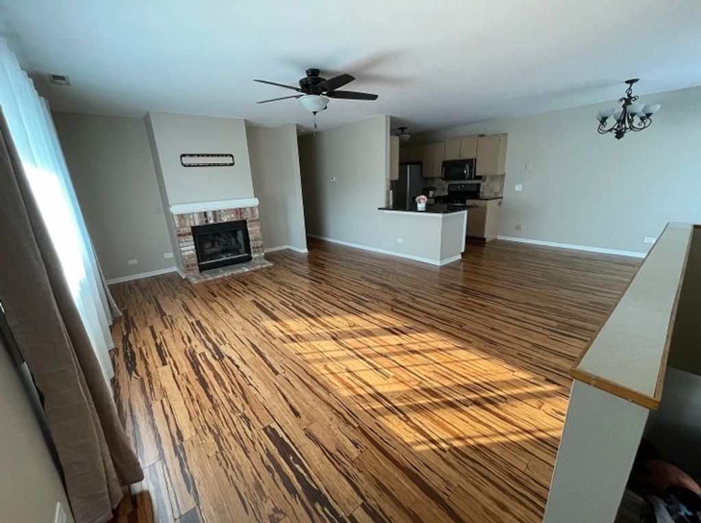 Discover your new home in this elegant second-floor, two-bedroom, one-bath condominium in North Naperville. Designed for both comfort and convenience, this end unit features an open kitchen equipped with recently updated appliances, granite countertops, and a spacious dining area with a sliding glass door leading to a private balcony. The in-unit laundry room includes a full-size washer and dryer for added convenience. Additional highlights include triple-pane insulated windows, bamboo flooring throughout the main living area, and a charming brick fireplace with gas logs. The primary bedroom offers a walk-in closet, a pull-down attic for extra storage, and a dedicated vanity. A nearly new, energy-efficient AC unit, installed just two years ago, enhances the home's comfort. The attached one-car garage provides direct access to the unit, ensuring ease of entry. Ideally located near downtown Naperville, the train station, top-rated schools, shopping centers, and I-88, this property also offers access to scenic bike paths leading to the Riverwalk. An exceptional location combined with thoughtful amenities makes this residence an ideal choice for discerning buyers.