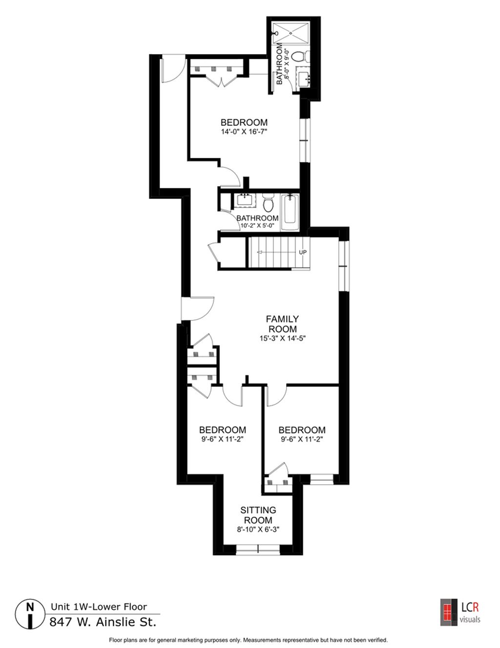 Welcome to 847 West Ainslie Street, unit 1W-a masterfully designed duplex featuring 4 bedrooms, 4 bathrooms, and convenient tandem parking. The first floor boasts an open kitchen with a chic island, quartz countertops and backsplash, and premium BOSCH stainless steel appliances. The spacious living and dining area is perfect for a good-sized table and cozy nights by the fireplace, complete with a full bathroom on this level. The expansive primary suite includes walk-in closet and separate closet and a luxurious ensuite bath with heated floors, a double vanity, and a walk-in shower. The lower level offers heated floors, natural light, and separate entrances, featuring a generous family room, three bedrooms, and a full bath. One of the bedrooms includes an ensuite bath, making it ideal for guests. This property is equipped with organized closets, window treatments, central air/heat, a tankless hot water heater, and a full-size LG washer/dryer. A good-sized deck adds to the outdoor charm. Nestled in the heart of Margate Park, the fully gutted and rehabbed development features seven modern condos five simplexes with 3 bedrooms and 2 bathrooms each, and a garden unit with 3 bedrooms and 2 bathrooms, each featuring outdoor private decks. fresh designs while preserving the building's original charm, highlighted by wooden stairs and a skylight. Located near the lake and a park, 847 West Ainslie Street provides an ideal setting for city living. These stunning units are ready for delivery.