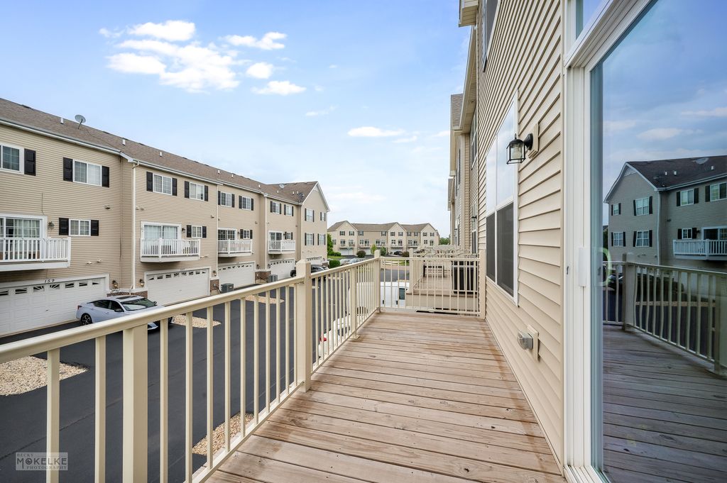 Beautiful & Spacious end unit with over 2,200 square feet. Featuring three bedrooms, two and a half bathrooms and lower level living space. Chic & trendy kitchen provides plenty of countertop (quartz) & cabinet space, large island & stainless steel appliances for all of your culinary creations. The dining room is situated between the kitchen and expansive living room, making it perfect for entertaining & provides access to the deck with its relaxing views. Main level includes luxury plank vinyl flooring, custom blinds & wrought iron railings. The second floor offers three bedrooms & two full bathrooms. The expansive owner's suite includes a private spa-like bathroom with a walk-in closet. Lower level flex area can be used for so many things - office, playroom, game room, family room, and much more. Full laundry room including a sink and a storage area are also on the lower level. Check out the custom flooring in the garage. Seasons at Southbury is a highly desirable, low maintenance townhome community with a clubhouse, pools, exercise facility, pickleball courts, walking paths, ponds & park. Welcome home!