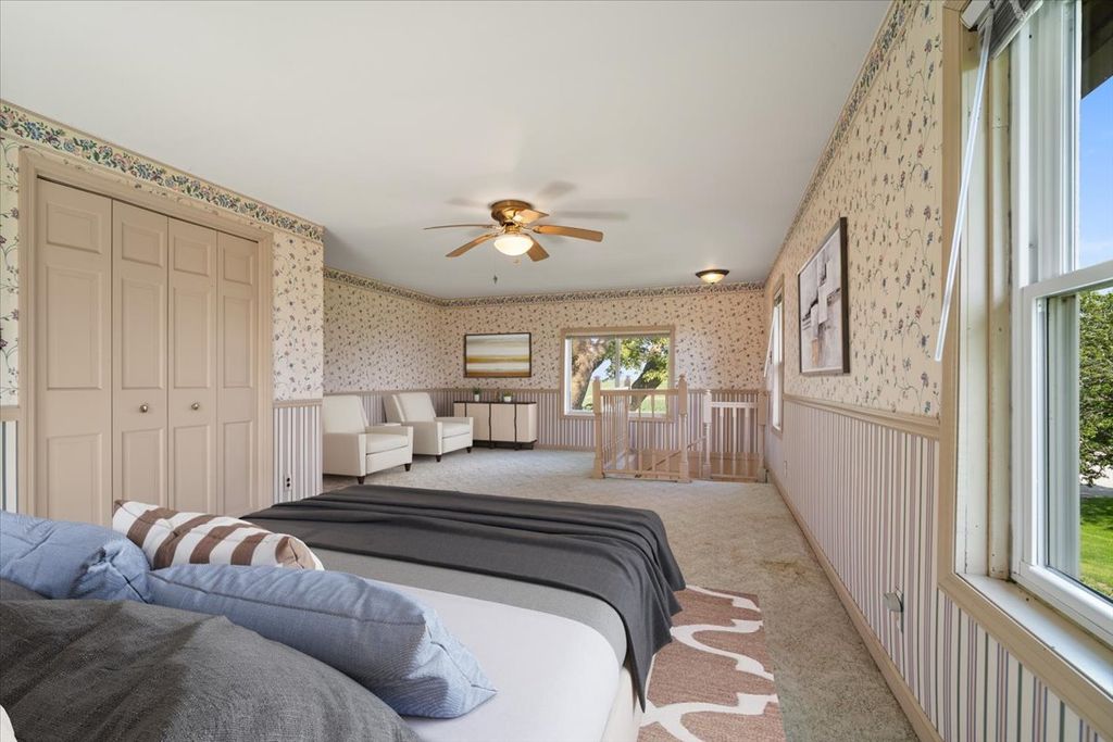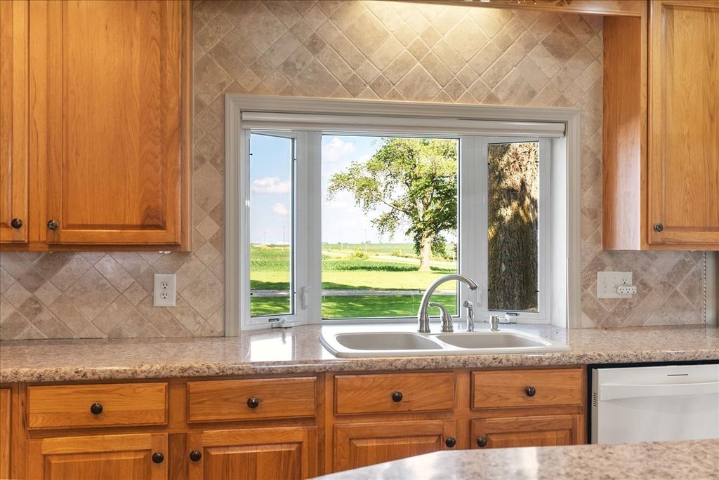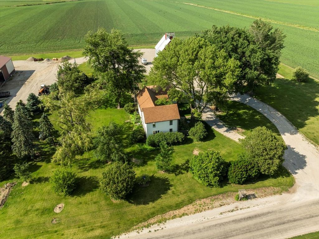 Come make this solid farm house on 2.69 acres yours today! Property has 3 main bedrooms upstairs and a 4th bonus room on the main level that could be converted into a bedroom with a bathroom attached as well if needed. Enjoy the spacious laundry room with so much cabinet space and extra fridge space as well. The kitchen has been updated with custom cabinetry and a view out the kitchen sink window that will make you actually want to wash those dishes! There are 2 full bathrooms on the main level and a half bath upstairs. Roof on the house is 15 years old and in good condition and the 2 car garage with in floor drains has a new roof. Upon going outside you will find a picturesque barn & corn crib to enjoy as well as a great yard with a deck & patio leading to a well established, low maintenance koi pond with many fish! Full dry basement with additional office space and LOTS of storage and 2 deep freezers that stay with the property. Call today to make this property yours!