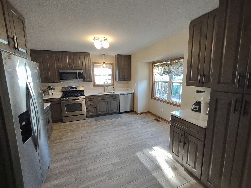 Move-in Ready Home on a Cul De Sac Lot with a large back yard. Prime location: close to shopping and a very short walking distance to Elementary and Middle schools (Plainfield 202 Schools). 2004 sq ft above grade plus an additional 800 sq ft finished basement gives the house 2800 sq ft of finished living space. Hardwood floors (actual refinish-able hardwood) throughout 1st and 2nd flr (installed 2012). Fully renovated kitchen with Quartz countertops, stainless steel appliances, soft close hardware, pantry, and an extra deep sink. Formal living and dining rooms. Sellers will miss the huge master bedroom with ample room for a King-size bed and big furniture that goes with it. Private master bath with clawfoot tub and shower with dual shower heads. Formal living room and dining room. Fully finished basement is well-planned and expertly laid out. Luxury Vinyl Plank flooring throughout basement. Basement bedroom is attached to a shared ensuite basement bath (2 access points). Large Basement rec room with wet bar and beverage fridge is perfect for entertaining or a family night in. No space was wasted in the basement; there's easy access to all mechanicals as well as storage. Fully fenced yard with maintenance free vinyl picket fence (2009) and vinyl garden shed. Juneberry tree in front yard. Currently installed SimpliSafe alarm system is staying (except the cameras). Wired with CAT6 at all networking jacks. Recents: Roof w/ full tear-off 2019, High Efficiency Furnace and Air Conditioner 2022, New Asphalt Driveway 2024, New Washing machine 2025, Water Heater 2022, RO system 2020, Basement finished 2023-2024. New kitchen 2025 with quartz countertops and soft-close cabinetry, paint, custom basement stairs, New flooring in kitchen, foyer, and mudroom 2025. Fresh Paint throughout most of the home (either white or neutral tones). Over 100k in recent updates/ improvements. Quick Close is OK. BROKER OWNED