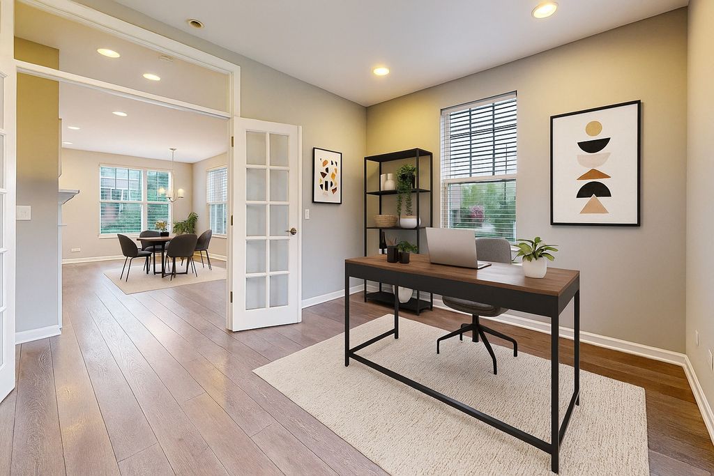 Beautiful finishes throughout this amazing corner unit townhome with lots of sunlight and amazing views! Open floorplan plan main living area that exemplifies elegance. The solid dark flooring adds the perfect touch of sophistication along with the fireplace creating warmth and luxury. The kitchen is perfect for the cook with taste in the home considering the high-end stainless steel appliances, white shaker style cabinetry and exceptional granite countertops. The kitchen island is perfect sized! Off the kitchen is a cozy breakfast nook that leads to sliding glass doors to your private balcony! Upstairs you will find the master bedroom, 2nd bedroom and very conveniently located upstairs laundry! Great location - this maintenance free townhome is highly desirable with District 103 schools and only 4 blocks away from Stevenson High School! New carpeting just installed! Vernon Hills at its best!