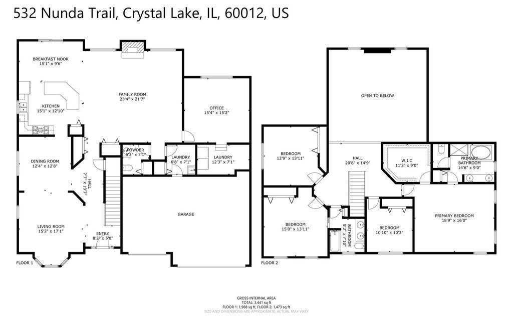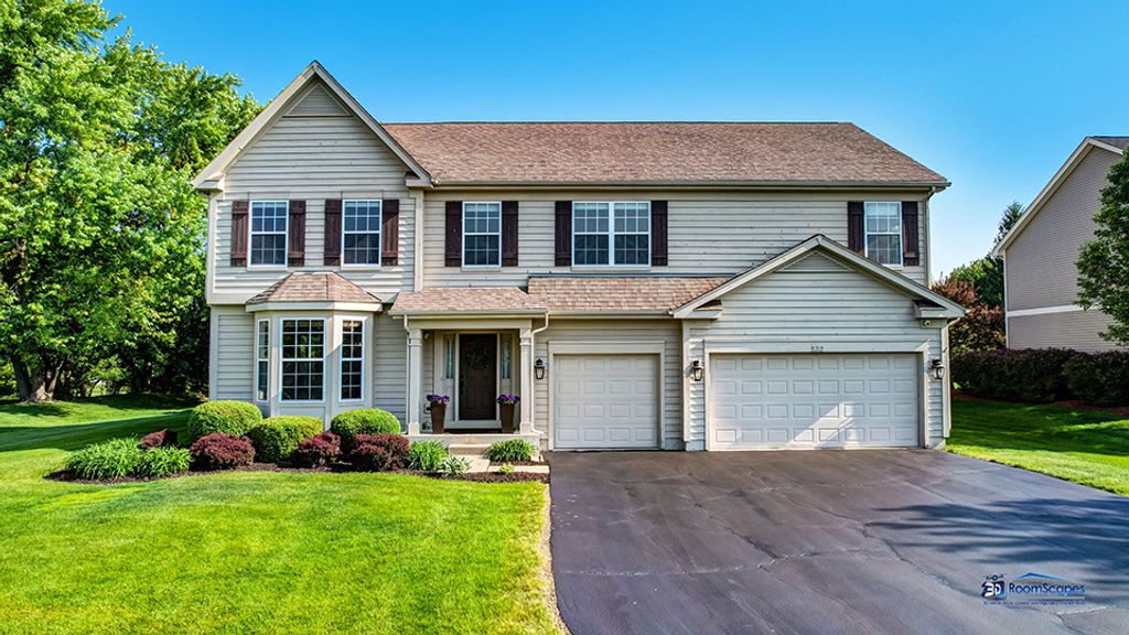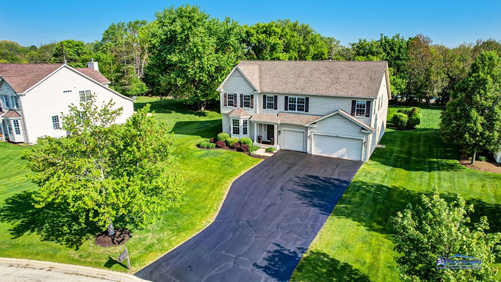 Welcome to 532 Nunda Trail in Crystal Lake - a stunning almost half-acre estate offering 3,380 square feet of beautifully designed living space and a spacious 3-car garage. The main level features rich hardwood flooring and a gourmet kitchen complete with an oversized island, stainless steel appliances, granite countertops, and elegant maple cabinetry. Soaring vaulted ceilings highlight the great room with the floor to ceiling stone, gas fireplace that is eye catching and creates a bright and open atmosphere. A versatile main-level den, with a large closet space currently used as a laundry room, adds flexible space for work or even an additional bedroom. Upstairs, you'll find four generous bedrooms, including a luxurious primary suite with a vaulted ceiling, large walk-in closet, and soaking tub and separate shower. Enjoy the tranquil outdoor setting with a brick patio and beautifully landscaped yard. Located within the desirable Prairie Ridge High School boundaries and just minutes from downtown Crystal Lake, Three Oaks Recreation Area, bike paths, train station, dining, and more!