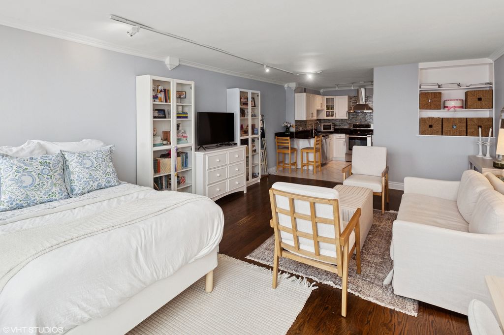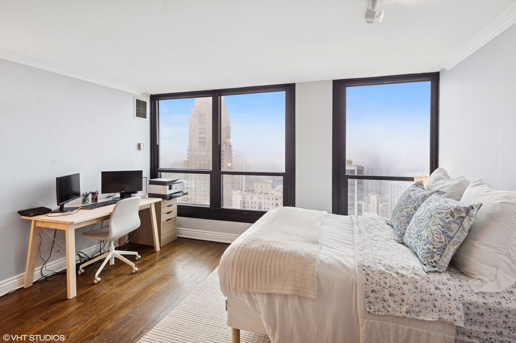 Sophisticated high floor studio with sweeping Lake & City views in iconic Newberry Plaza. Perched on the 51st floor of the highly sought after Newberry Plaza, this extra large, fully upgraded studio offers spectacular, unobstructed views of both the city skyline and Lake Michigan. Set in the heart of the Gold Coast, the home showcases a beautifully renovated kitchen with stainless steel appliances, statement backsplash tile, and a cozy breakfast nook. Rich dark wood flooring adds warmth and elegance throughout, while generous closet space, including multiple deep closets, ensures effortless storage. A thoughtfully designed built-in vanity with a full size mirror provides the perfect space for a makeup station or personal dressing area. Every inch of this residence has been carefully curated for both style and functionality. This is one of the most desirable tiers in Newberry Plaza, and recent renovations elevate it even further. The building offers premium amenities including a 24hour doorman, on site management, outdoor pool, sundeck, fitness center, bike room, storage, valet parking, Tide Cleaners service, a convenient vending area, and a professional conference room/office space, perfect for remote work or meetings. Low monthly assessments include all utilities except electricity, an exceptional value for both homeowners and investors. Enjoy an unmatched lifestyle just steps from Oak Street Beach, the Magnificent Mile, luxury boutiques, Lincoln Park, and Chicago's finest restaurants and cafes. Convenient access to public transit (Red Line 3 blocks; Brown & Purple Lines 5 blocks), Jewel's Osco, Aldi, all within walking distance. Newberry Plaza is a meticulously managed building with recent updates, including a renovated lobby, new carpeting, and modernized unit doors, all enhancing the living experience. Leased parking is available on-site for $300/month. The unit is currently leased through April 2026. Easy to show with short notice. Don't miss this exceptional opportunity in one of Chicago's most iconic buildings.