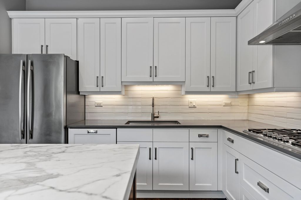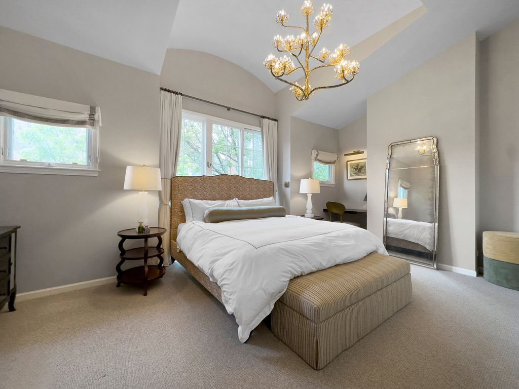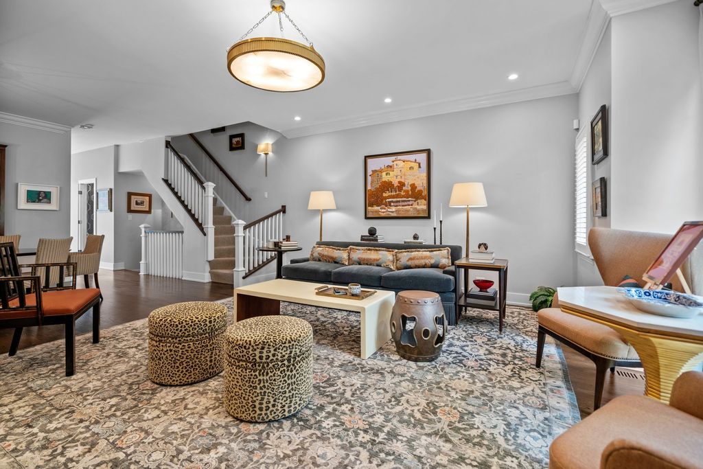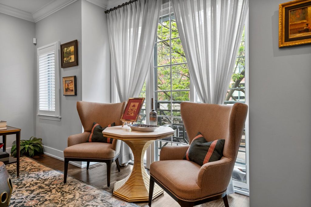 Beautifully renovated four-bedroom, two and a half bath Prairie Avenue townhome situated on a charming tree-lined street with a gated private front entry. This thoughtfully updated home blends contemporary finishes with timeless design! Step into a spacious foyer featuring custom grasscloth wallpaper, espresso hardwood floors, and a marble herringbone tile inlay. Glass French doors open to a flexible first-floor family room with custom white built-ins-ideal for a home office, playroom, or den. The second floor offers generous formal living and dining areas in an extra-wide open layout, filled with natural light from oversized windows and a Juliet balcony. Additional features include a gas fireplace, stylish new light fixtures, crown molding, custom window treatments, and a convenient powder room. The updated kitchen is both functional and stylish, featuring sleek white cabinetry, a large eat-in island with marble countertops, pendant lighting, stainless steel appliances, a walk-in pantry, and double sliding doors leading out to a private balcony-perfect for grilling and entertaining. Upstairs, the expansive primary suite includes space for a sitting area, custom lighting, grasscloth wallpaper, crown molding, and two walk-in closets with built-in organization. The ensuite bathroom offers spa-inspired amenities such as a dual-sink vanity, ample storage, heated tile floors, a glass-enclosed shower with body sprays, and a large jetted soaking tub. All additional bedrooms are well-sized, with designer lighting, custom window treatments, and generous closet space. Even the guest bathroom has been stylishly updated with modern finishes & the side-by-side laundry closet is conveniently located on the same level as the bedrooms. The attached two-car garage includes an epoxy floor and built-in storage solutions. This home is ideally located on one of the most coveted streets in the South Loop, you're flanked by two parks, Museum Campus, the Lakefront Trail, shopping, dining, and have easy access to downtown, public transit, and all major expressways!
