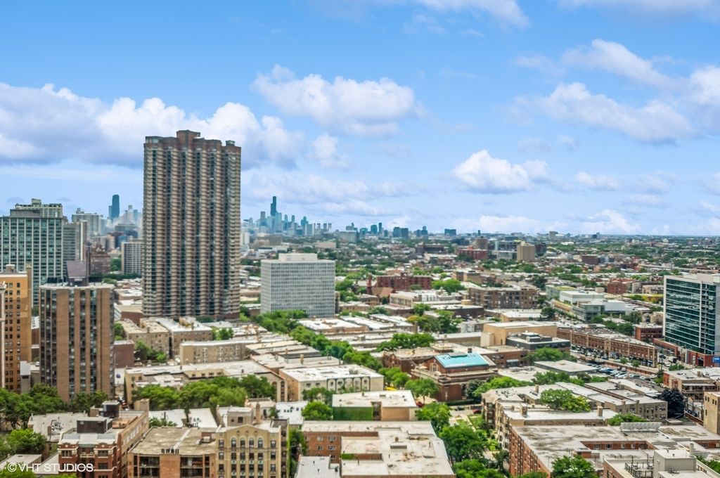 Stunning 1-Bedroom with Spectacular City & Lake Views! This south-facing 1-bedroom/1-bath unit offers breathtaking views from the lake to the city, featuring hardwood floors throughout and a modern kitchen with granite countertops and stainless steel appliances. Perfectly located near the lakefront for running, biking paths, and golf courses, and just minutes from Wrigley Field, eclectic restaurants, and convenient transportation options including the Red Line and express bus routes to downtown. The building boasts full amenities: 24-hour door staff, state-of-the-art fitness center, party room, outdoor pool with cabanas, grills, basketball court, on-site grocery, and dry cleaner-everything you need for a convenient and vibrant lifestyle in your new home! Park Place Tower is moments away from Montrose beach, Marovitz golf course, Montrose dog park, tennis courts, and Montrose harbor, and the lakefront trail ideal for biking, running or walking.