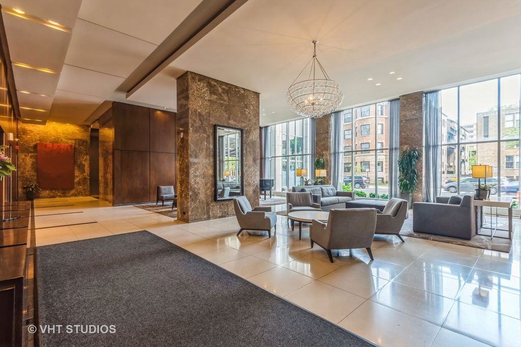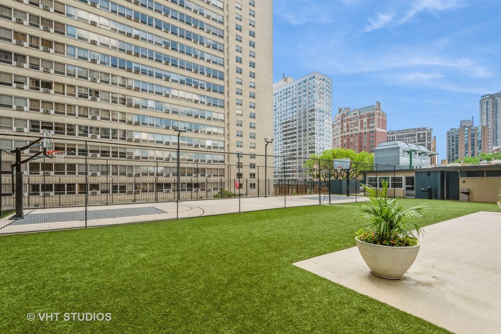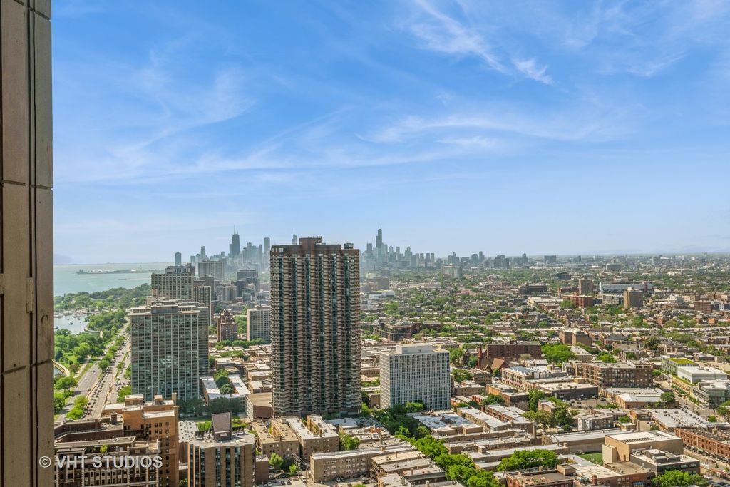 **Stunning One-Bedroom Condo on the 47th Floor with Panoramic Views** Experience breathtaking views of downtown, Wrigley Field, and the lake from this upgraded one-bedroom condo located on the 47th floor. The kitchen boasts granite countertops, stainless steel appliances, a brand-new refrigerator, and tile flooring, while the living/dining area and bedroom feature hardwood floors throughout. Enjoy a wealth of amenities including 24-hour front desk staff, an outdoor pool and grills, a gym, theater, party room, pet-friendly dog run, bike room, and basketball court. Situated in an incredible location, this condo is close to shopping, restaurants, the CTA Red Line, Lake Shore buses, the lake, bike trails, a golf course, and Montrose Harbor. Additional conveniences include an in-building grocery and dry cleaner, with laundry facilities located in the basement. Investor-friendly with no rental restrictions, the condo's assessment includes heat, air conditioning, water, TV/cable, and internet access. Don't miss this incredible opportunity to live in a prime location with stunning views and top-notch amenities!