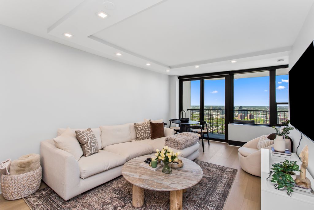 Now priced to be the best high-floor 2 Bed, 1 Bath Value in James House-And It Shows. Located on the 40th floor with unobstructed skyline and sunset views, this fully remodeled condo offers more than just stunning aesthetics-it delivers thoughtful upgrades rarely found at this price point. Beyond the sleek interior transformation, the seller has added UV film to the windows and high-end motorized blinds throughout, maximizing both energy efficiency and everyday comfort. Penthouse vibes meet showroom style in this reimagined 2-bedroom, 1-bath home in the iconic James House, part of amenity-rich Sandburg Village. Wide-plank, white oak engineered hardwood flooring flows seamlessly through the open-concept layout, leading to a west-facing balcony that feels like a private skybox for every golden hour. The chef's kitchen boasts quartz countertops, matte black hardware, custom white cabinetry, island seating, and a full suite of smart stainless appliances. A walk-in pantry adds functional luxury, while in-unit laundry, recessed lighting, and WiFi-capable switches bring next-level convenience. The oversized primary bedroom features a professionally organized closet, recessed lighting, and tranquil motorized room-darkening shades-perfect for sleep or a peaceful work-from-home setup. The spa-like bathroom dazzles with boutique finishes: designer tile, matte black fixtures, and a frameless walk-in shower with full-body spray. The versatile second bedroom offers room for guests, a home office, or creative studio. James House residents enjoy 24-hour door staff, valet garage parking ($190/month), a fitness center, tennis courts, two pools, a penthouse party room, and a rooftop deck with jaw-dropping lake and skyline views. Located just steps from North Avenue Beach, Lincoln Park, Old Town, and the Gold Coast-with CTA lines within easy reach-this isn't just a home. It's a lifestyle move. Turnkey. Elevated. Irresistible.