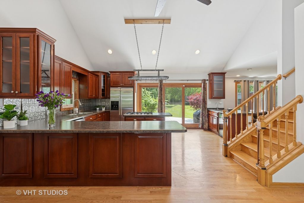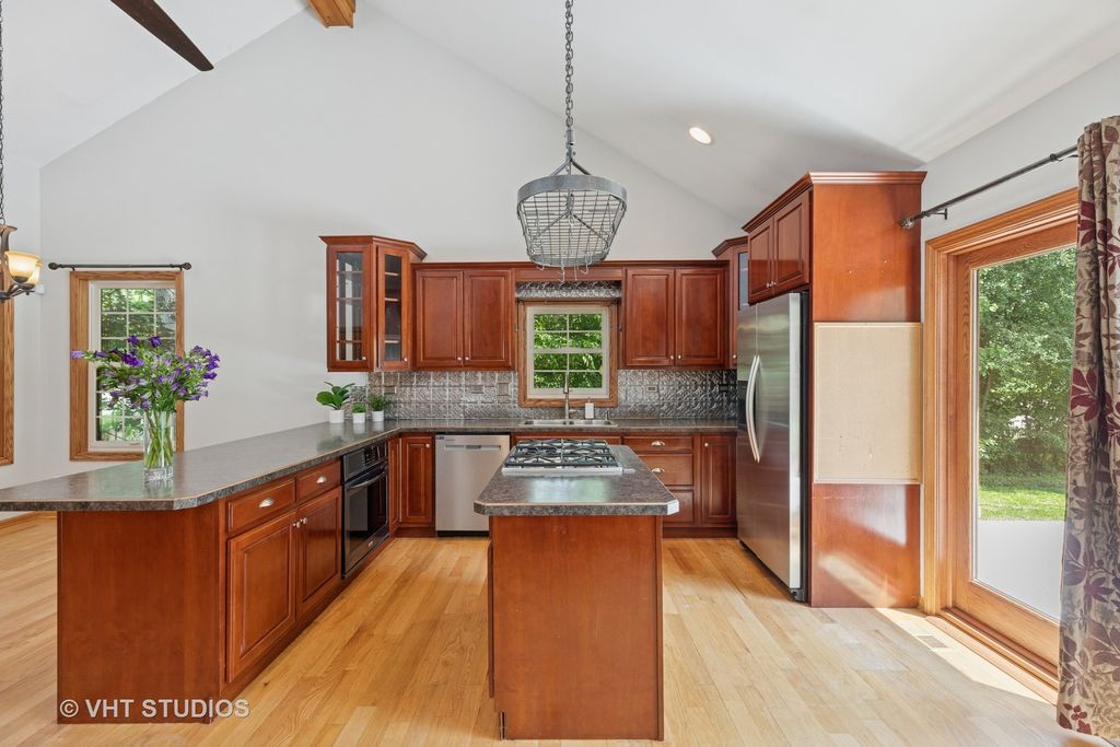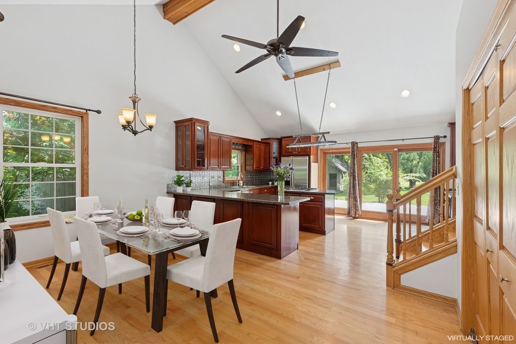 Huge Price Reduction!! Gorgeous and Remodeled 3 Bed, 2.2 Bath Custom Contemporary with luxurious upgrades and improvements! Located on nearly 1 acre of one of the most beautiful and coveted wooded lots in Matteson, this beautiful country estate is sure to please! Be prepared to fall in love with this spacious residence that features an elegant front porch, stunning vaulted ceilings, open floor plan, hardwood floors, newer Anderson Windows, recessed lighting, and freshly painted in designer inspired colors throughout! Enter the light and bright foyer with huge walk in closet that leads to stunning Dining Room. Fabulous Cook's Kitchen boasts custom cherry cabinetry with spectacular integrated breakfast bar, custom island w/cook top, tons of counterspace, S.S appliances, deluxe overhead pots and pans rack, sunroof, and secondary island with new wine cooler. Large Family Room includes tons of windows and brick fireplace with both wood burning and gas logs option(2024). First floor laundry area features full size Washer and Dryer and additional custom cabinetry. Second floor includes a spectacular Main Bedroom with hardwood floors, recessed lighting, new paint, ceiling fan and private balcony overlooking spectacular grounds. Stunning spa-like ensuite includes a jacuzzi, double shower w/steam and seating, designer glass bowl faucet, newer ceramic tile flooring and backsplash. Two additional large Bedrooms include hardwood floors, large windows, ceiling fans, and plenty of closet space. Fantastic remodeled half bathroom complete this upper level. Amazing Full Basement features 9 FT ceilings, heated floors, tons of storage, utility room and additional half bath. Additional amenities include New Seal Coat on Driveway(2025), Heated 2.5 car garage, water heater (2023), Split A/C ,Electronic Air Cleaner( 2023),New concrete patio(2024), Humidifier (2023), 14 Ft gate into backyard, Anderson Windows (2023) New Air Raider (2024) Lift pumps(2024) Yaeger and Son's water filtration system, (2024)Stainless steel water pump 2024, exterior Tank (2024)New Humidifier(2024)and fully fenced. Looking for the perfect retreat, this stunning residence includes both a heated She Shed and He Shed. Located minutes away from restaurants, shopping, Metra, Interstate, Downtown Homewood Flossmoor, Frankfort, and Cook County Nature Preserves. Make this your dream home today!