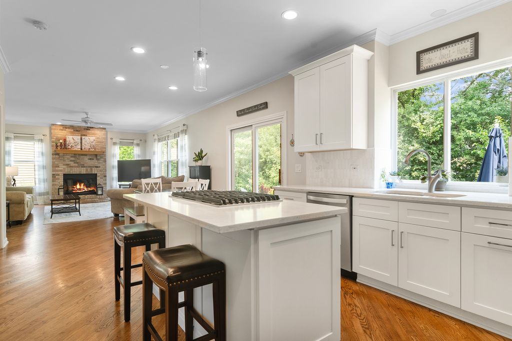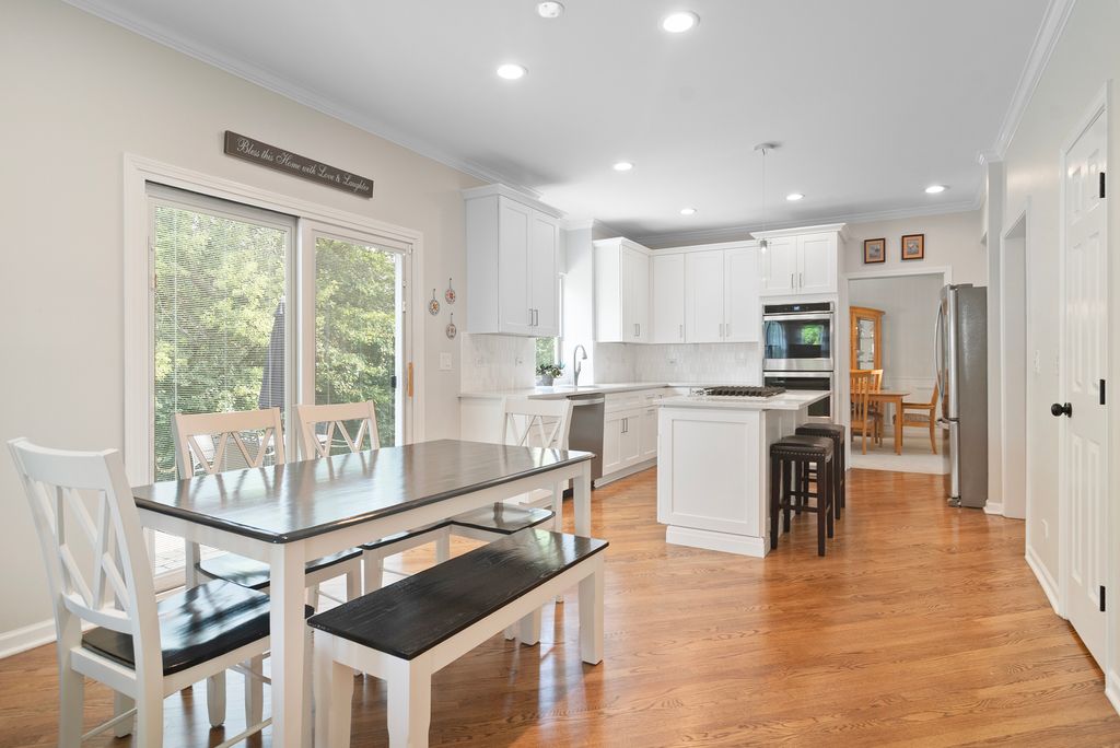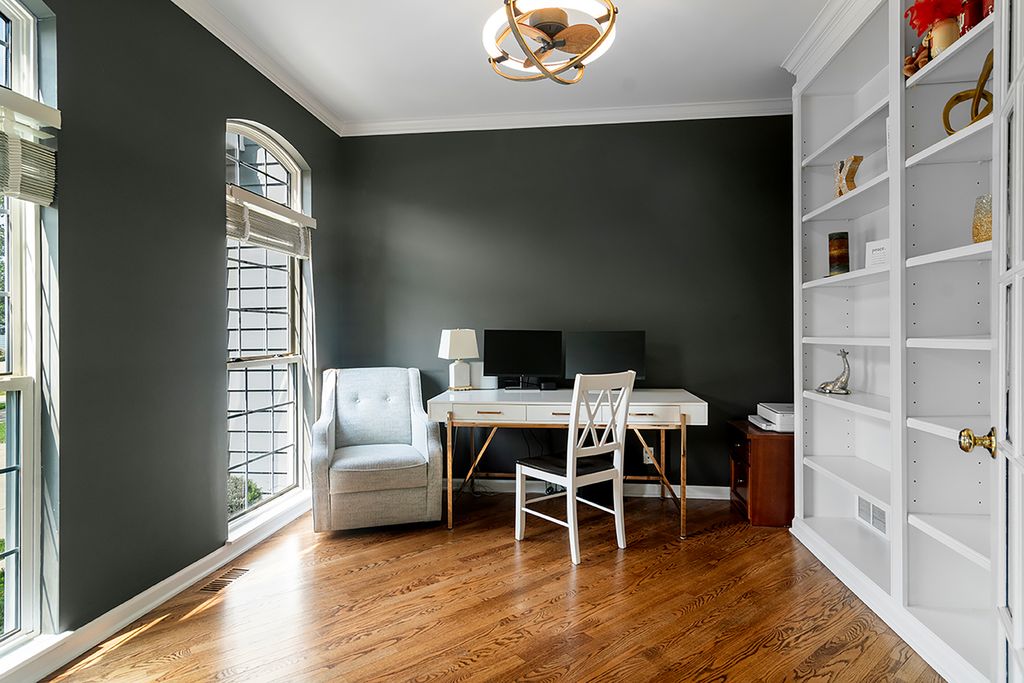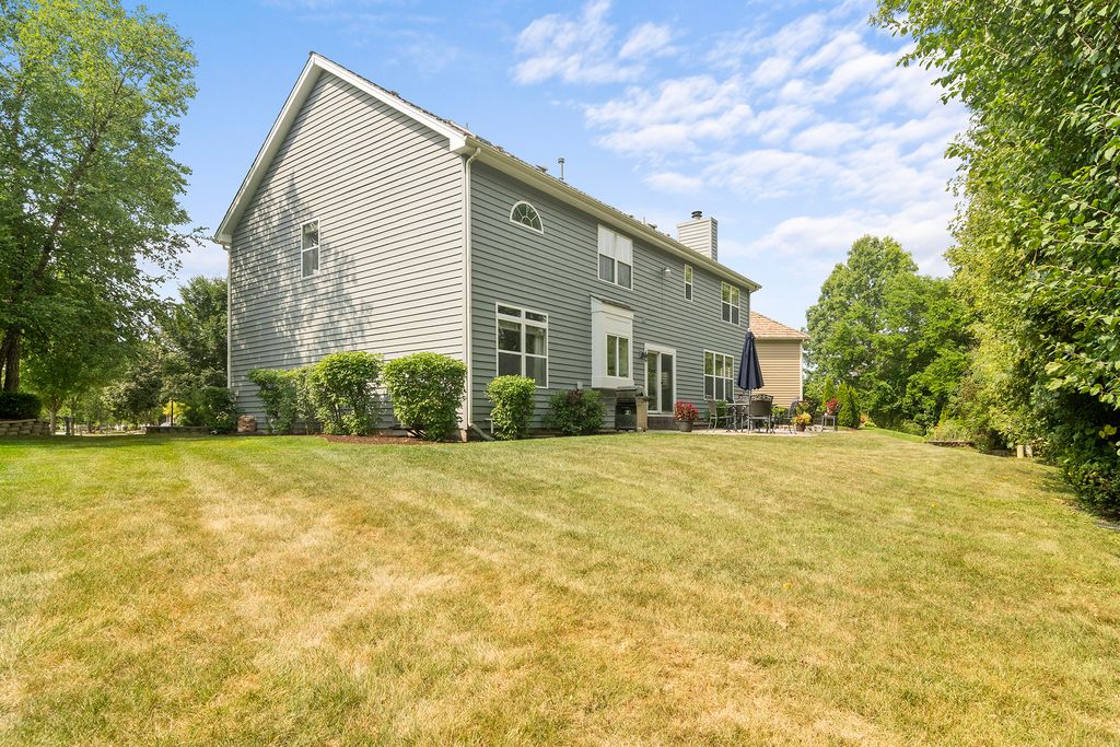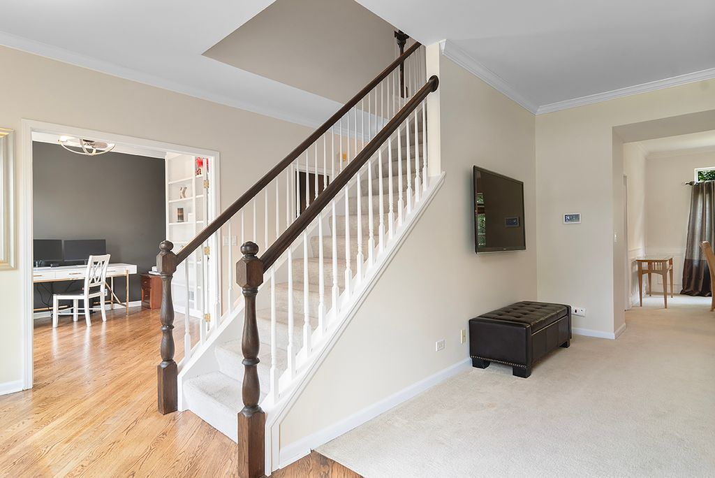 Welcome to this beautifully updated 4-bedroom, 2.2-bathroom home nestled on a quiet cul-de-sac surrounded by mature trees and impressive curb appeal. Step inside to discover a thoughtfully designed layout featuring an elevated look with neutral colors, elegant trim and wainscoting and recently refinished hardwood floors throughout throughout much of the main floor. The heart of the home is the recently updated kitchen, boasting white cabinetry, all new stainless steel appliances, a walk-in pantry, and an open flow into the spacious family room-perfect for entertaining or everyday living. A dedicated main-floor office with French doors and built-in bookshelves offers the ideal work-from-home space. Upstairs, the expansive master suite includes a walk-in closet and an updated luxurious ensuite bath with dual sinks, a soaking tub, and a large walk-in shower. Three additional generously sized bedrooms, large enough for the pickiest kids or guests, share a large updated full bath in the hallway. The finished basement offers additional living space, a second half bath, and abundant storage with multiple crawl spaces. This exceptional home combines style, space, and function in a serene, sought-after location. With newer AC, furnace, hot water heater, sump pump, flooring and paint, the next owner will have peace of mind for years to come! Please see full list of updates in Additional Documents.