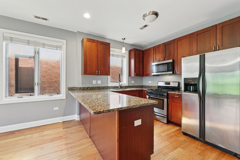 Spacious Top-Floor Unit with Exclusive Rights to Rooftop Use! This beautifully designed 2bed, 2bath penthouse walk-up offers an expansive 1,500 sqft of open living space. This unit is freshly painted with in-unit washer/dryer. Soaked in natural light from oversized windows, the home features hardwood floors throughout and an impressive kitchen with granite countertops, stainless steel appliances, and abundant cabinetry. This spacious, open layout easily accommodates large furniture, a full dining table, and a breakfast bar. Master Suite features a walk-in closet, dual vanity in the bathroom, a separate shower, and a soaking tub. Enjoy two private patios plus your entire private rooftop, ready for your personal touch! One car garage parking is included. Convenient access to highways, trains, Lake Shore Drive, and ITT campus. Investor-friendly, Easy to show-schedule your tour today!