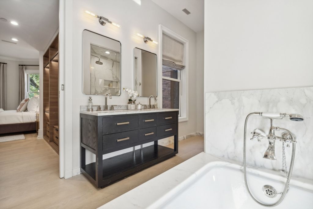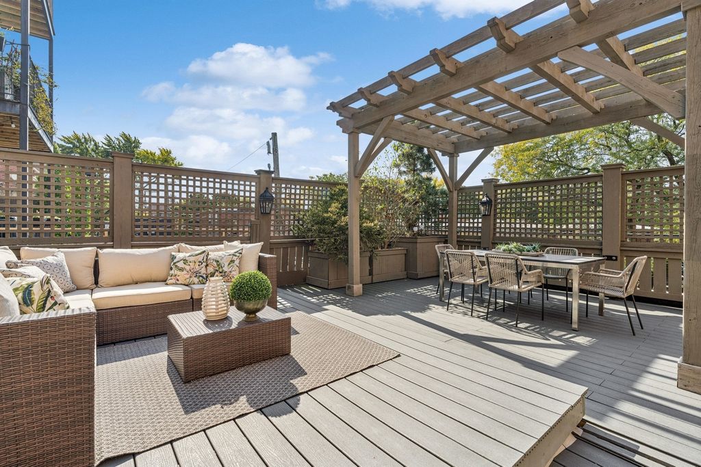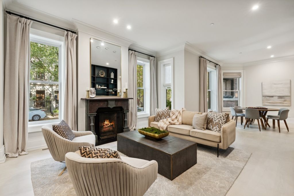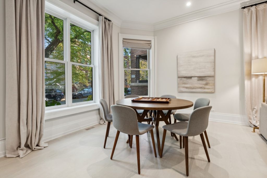 Timeless and turnkey with an incredible outdoor footprint that includes a pool, 545 W. Dickens Ave. is a 5-6 bed/5.5 bath, 6,400-square-foot single-family home located in Chicago's coveted Lincoln School District. Situated on a charming residential stretch of Dickens, this 1880s home's facade has 50-ft-wide frontage that has been expertly maintained to preserve its original character, including turn-of-the-century front doors and updated ironwork. Inside, the entire home was stripped back to the brick to create a one-of-a-kind, custom dwelling for elevated entertaining and modern living. The living spaces are impressively open-concept for the provenance of the home. The entryway opens onto a main level that's designed for entertaining, including a natural light-filled living room with large plank white oak hardwood floors, a distinctive fireplace, and custom, floor-to-ceiling bookshelves, a large formal dining area with meticulous millwork details and a built-in wet bar and dumbwaiter direct to kitchen, and a polished family room that invites gatherings. (This level also features an ensuite guest bedroom as well as a stylish craft/mud room with custom cabinetry) The second level boasts a large sitting room with a second fireplace that connects to a great room and a designer kitchen (Also easily utilized as a large formal dining area). The great room features a breakfast dining space and a den with a movie screen that drops down from the ceiling, while the light and bright chef's kitchen stuns with custom Arclinea cabinetry, marble countertops, a large island with seating for five, and professional-grade appliances. Both the great room and the kitchen link to a 45' x 28' back deck - more than 1,200 square feet of private outdoor space! - with defined dining and lounging spaces, a pergola, and a pool with a retractable cover and endless swim resistance feature. The top floor presents four total bedrooms (one with yet another gorgeous, wood-burning fireplace), including a large primary bedroom with a custom walk-through closet and a spa-like ensuite bath with a dual vanity, a soaking tub, and a glass-encased shower. But there's more... This spectacular home also comes complete with a basement level that boasts a wine cellar, surplus storage areas, multi-purpose recreation/craft area and a fully equipped home gym with attached bath (could be used as additional bedroom space). Additional callout details include designer draperies and custom shades, designer light fixtures, three total fireplaces, and an attached two-car garage. Walking distance to Oz Park, Lincoln Park proper, the Nature Boardwalk and Lincoln Park Zoo, and the beautiful beaches along Lake Michigan, 545 W. Dickens Ave. is a design-forward home with first-class amenities and proximity to the very best of Chicago.
