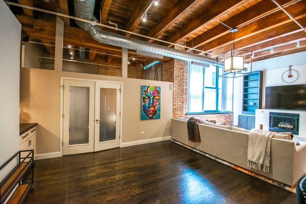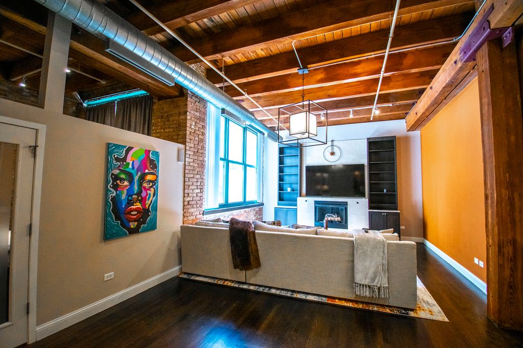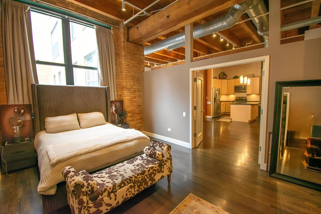 Spacious 2-bedroom, 2-bath loft in the historic Prairie District Lofts. Former Kodak factory. Features include soaring timber ceilings, exposed brick, oversized windows, and hardwood floors throughout. Open layout with a modern kitchen featuring stainless steel appliances and ample counter space. Primary suite includes a full bath and walk-in closet. In-unit laundry. Building amenities include a fitness center and rooftop deck. Located in the heart of the South Loop near parks, restaurants, museums, public transit, and the lakefront.
