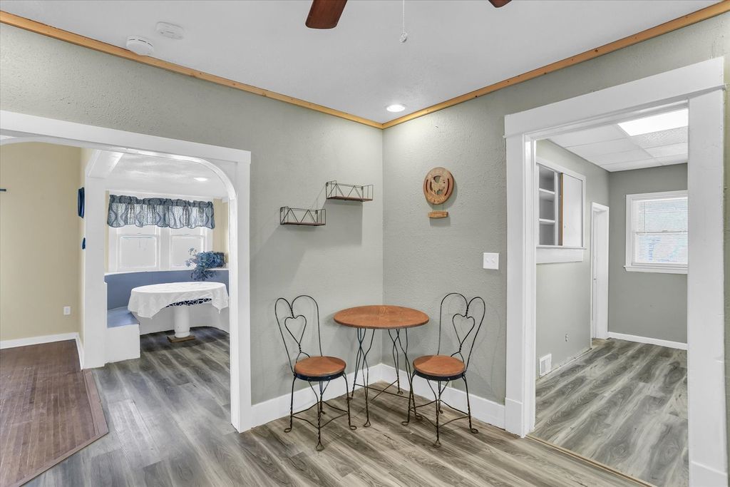 Welcome home to this wonderful 3 bedroom 1 and 1/5 bath home. This home features many updates including new metal roof, HVAC 2024, new gutters, news doors, few new windows, new hot water heater, new sump pump, 2 new garage doors and new wood laminate flooring. The family room features beautiful refinished hardwood floors, cathedral ceilings and new drywall. The dining area features an adorable dining nook perfect for family dining, and new wood laminate floors. The kitchen is very spacious with lots of cabinets and counter space. The home boast a large size laundry room. This home has a basement with lots of extra space. This is is a must see.