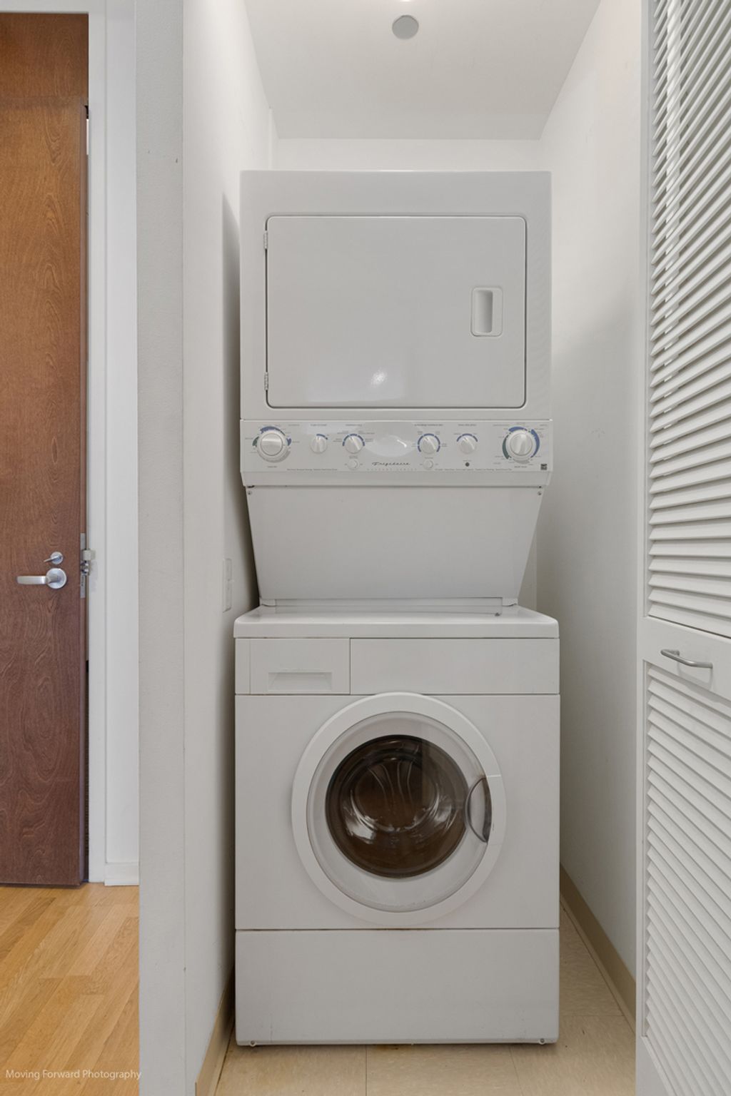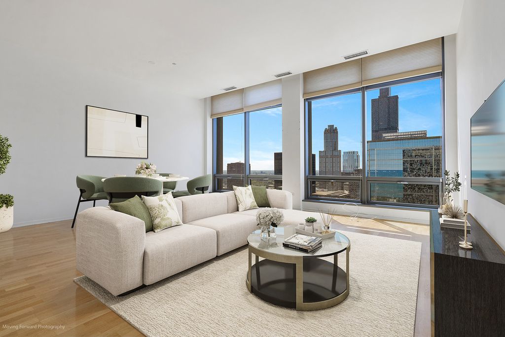 A Home in the Sky! This 1000 square foot condo is located on the 42nd floor of a luxurious building with sweeping views of Chicago! West and north views present a panorama of Chicago architecture, and is fabulous with nighttime vistas of lights and stars. This one bedroom, one bath unit has such a very spacious feel with its 10 foot ceilings and the floor to ceiling windows with the views of the city laid out beneath you. Wood floors through out, and the granite counter tops in the kitchen and marble top in the bathroom, bring a rich look to your new home. A meal bar at one of the kitchen entrances, provides a great spot for breakfast, or a convivial place for guests to gather and chat with hosts preparing refreshments. The primary bedroom boasts two closets with customized shelving and hanging space. Great natural light brightens all of the spaces including the bedroom with its cut away upper walls. Freshly painted, refrigerator new in 2024, new Kraus kitchen faucet, and marble newly polished add to the inviting atmosphere. The building, itself, has a host of amenities that gives living here a variety of options for entertaining and just relaxing: an exercise room; indoor pool with an outside deck for soaking up the sun & warmth during the summer; hot tub; a terrace with large grills, gardens, including an herb garden to enhance you culinary delights; heaters and fireplaces; an event space with stunning lake views; an immense outdoor covered deck; 24 hour door person security; on-site management; and even an indoor "dog walking" facility! Millennium Park, the Art Institute, Symphony Hall are across the street, and so much more is a very short walk away. Parking as available from other owners as a rental or purchase, or the public garage portion. All this and a very healthy HOA Reserve. Allow 24 hour advance notice for showings whenever possible, please.