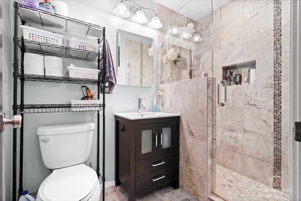 Spacious corner unit with open floor plan and tons of updates! Brand new European-style kitchen with frameless cabinets, quartz countertops, smart LED lighting, all new appliances, including a super quiet dishwasher, and large walk-in pantry. Breakfast bar opens to living area. Two full baths-one fully renovated with walk-in shower, the other with fully updated plumbing. Master bedroom with walk-in closet. Large balcony overlooks pool and tennis courts. Assessment includes heat and water. Laundry on same floor. Storage unit down the hall and community bike room. Enjoy the 2 outdoor pools in the summer, tennis courts, family friendly neighborhood with playground and bike trails, adjacent to property. Vacant & move-in ready and full of modern upgrades! Unit can be leased on day 1, - perfect investment opportunity