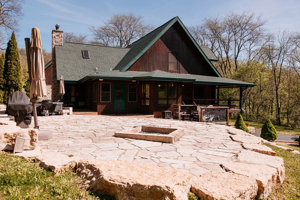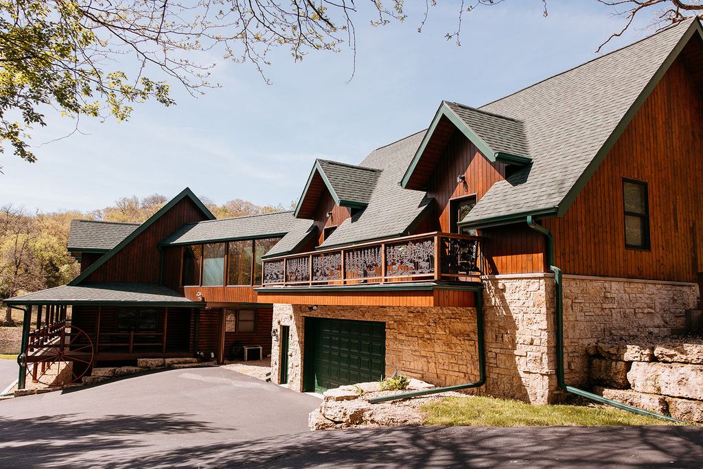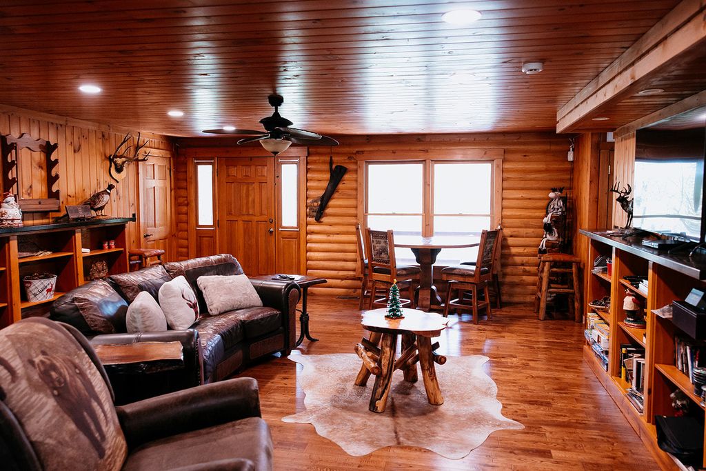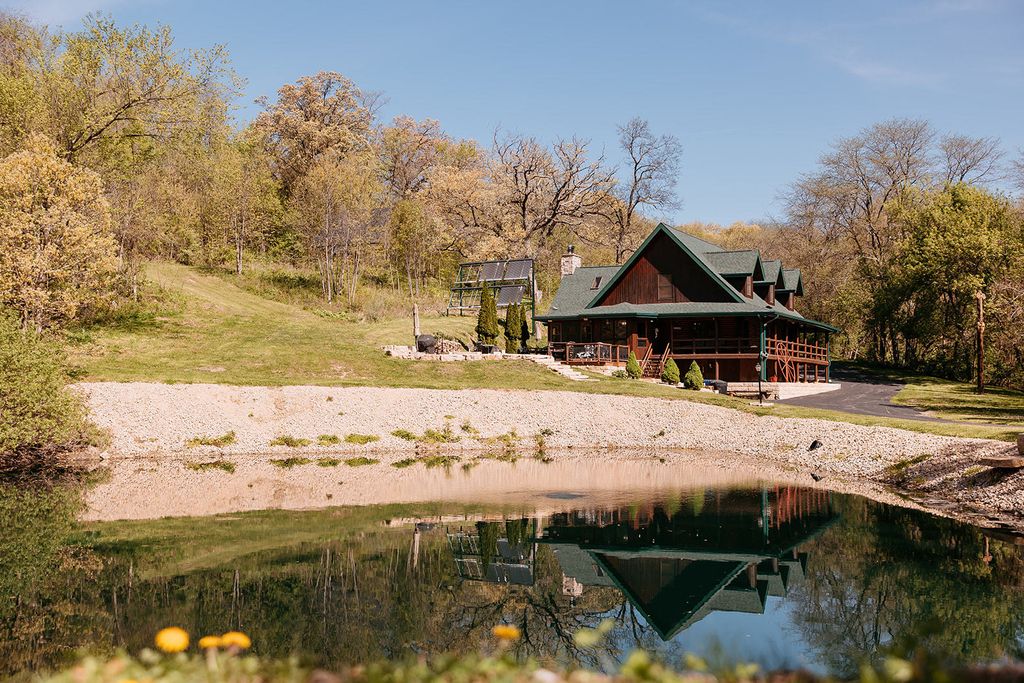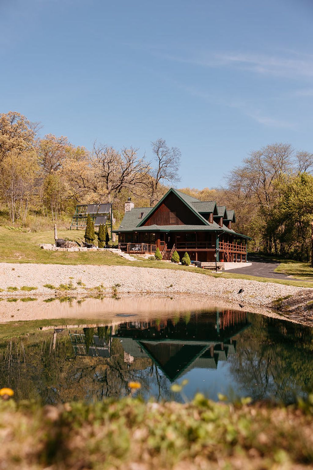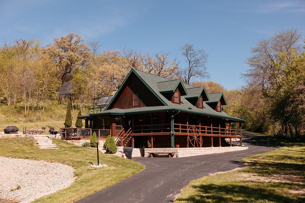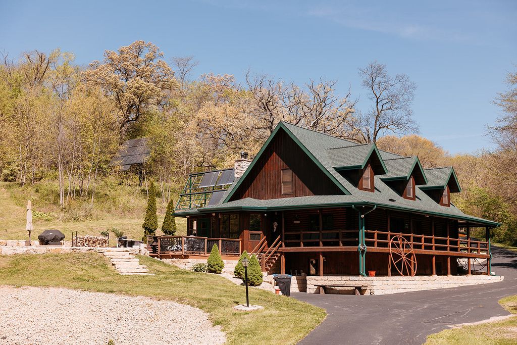 Luxury cabin and Chalet guest house overlooking a pond with 40 acres of stunning Jo Daviess County timber land. The 5000 sq ft real log cabin and 1100 sq ft Chalet guest house were made to entertain and house a large family or group of friends. The large master suite is on the main floor with 2 more large bedrooms upstairs and another bedroom suite in the finished basement. The kitchen is large and spacious with both a dining nook/eating area and a large formal dining room off the great room. The large great room is open to the second floor with a beautiful real stone fireplace as the center piece of that room. As mentioned, the finished basement is ready for action with game tables, TV area and wet bar, as well as a wood burning stove to keep things cozy on cold nights. There is also a large and beautiful limestone patio area with campfire pit off the side of the cabin overlooking the pond and timber. The Chalet guest house may be the coolest part of the whole deal as it can be accessed through an enclosed walkway from the main cabin and has its own private access separate from the house as well. The Chalet is basically a large suite with its own bedroom, bathroom and kitchen as well as another wood burning stove to cozy things up on winter nights. There is a huge 3 car garage under the Chalet for vehicles and storage. Perhaps the most amazing thing about this entire package is that the entire property is set up to operate completely off the grid with Solar panel and generator system to run everything. No electric bill, no water bill, completely self-sufficient property and with brand new roofing on cabin and Chalet. There is also a 30 x 40 ft log barn/garage with concrete floors, insulated and heated with plenty of room for more vehicles, tractors and toys as well as a workshop area. Last but not least is the gorgeous 40-acre parcel included in this sale. The pond has been mentioned already which is loaded with fish that are easy to catch and the pond has been lined with rocks and an air pump installed to keep water moving. The timber is classic Jo Davies County rolling hills and valleys with mowed trails throughout for hiking and access to hunting locations. The hunting for both deer and turkey on this property is not just good it is excellent, outstanding, way above average. The property and this area in general have high deer numbers and there are some huge bucks living on this 40 acres. They are seen from the cabin on a regular basis! The property is licensed for AIRBNB and books up immediately whenever the owners want to rent it and all the reviews of the guests are top with many 5-star reviews. There is nothing on the market in Jo Daviess County like this property right now so call today to set up a private showing while it is still available!