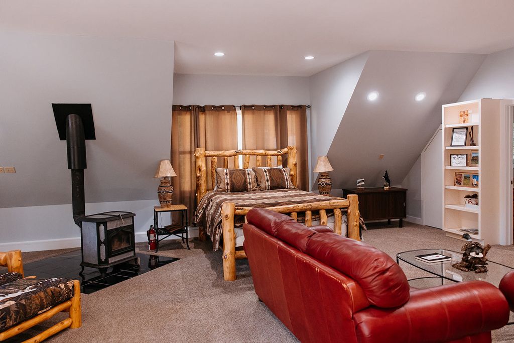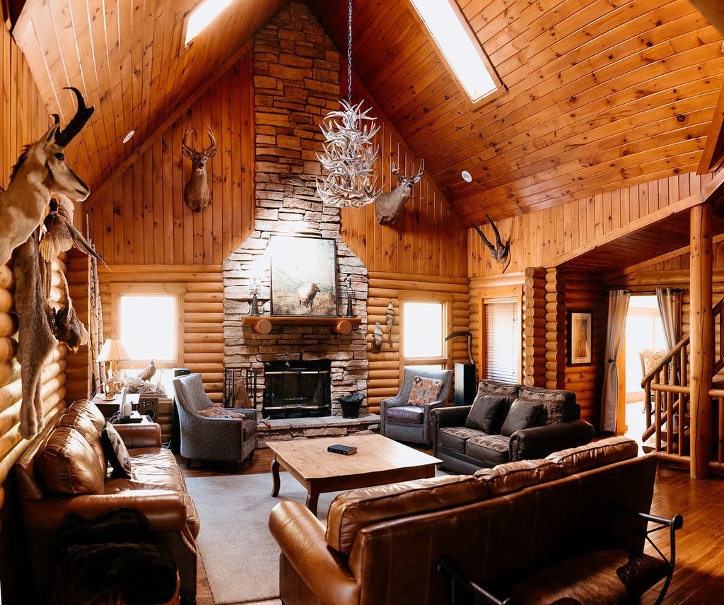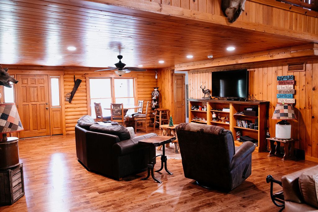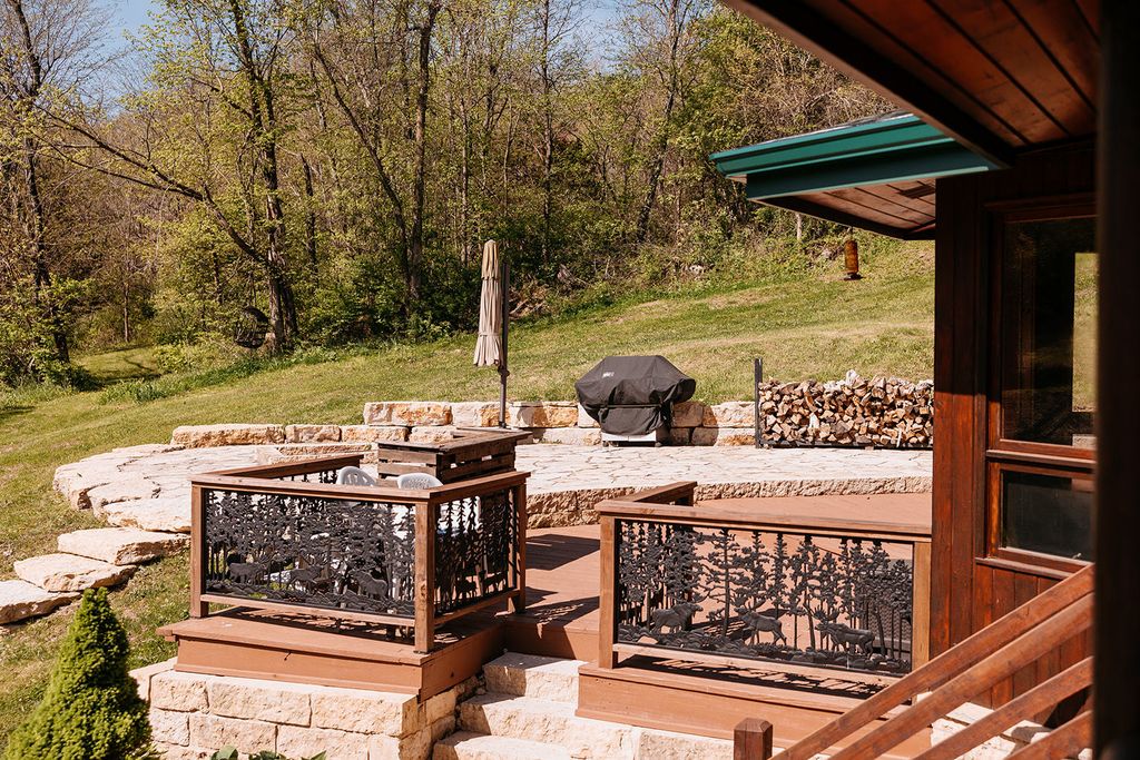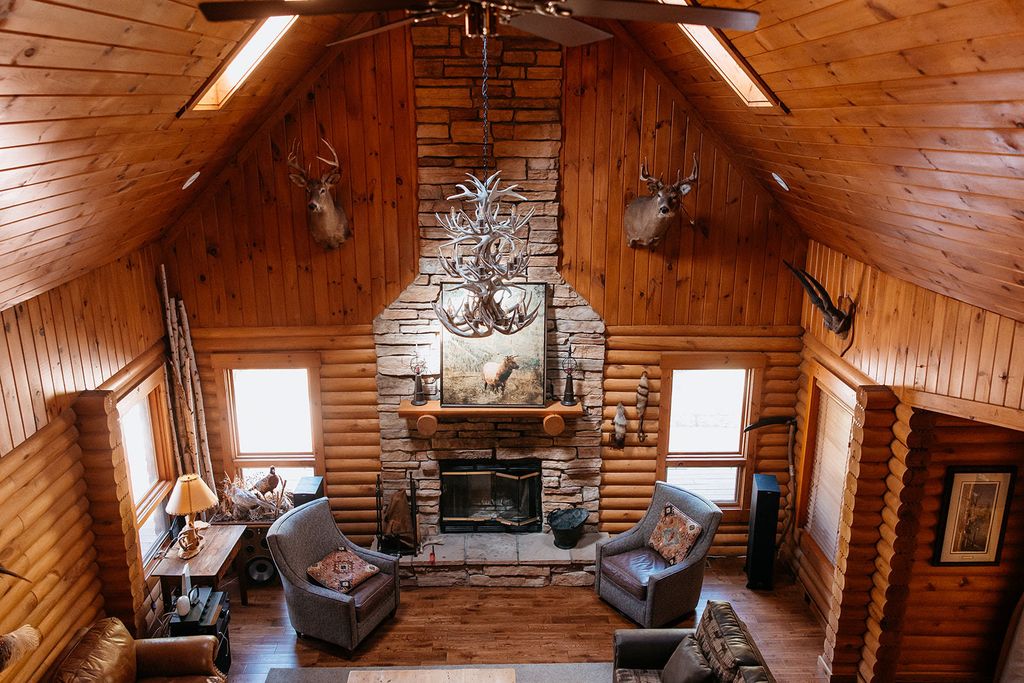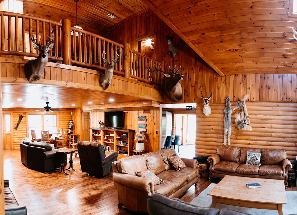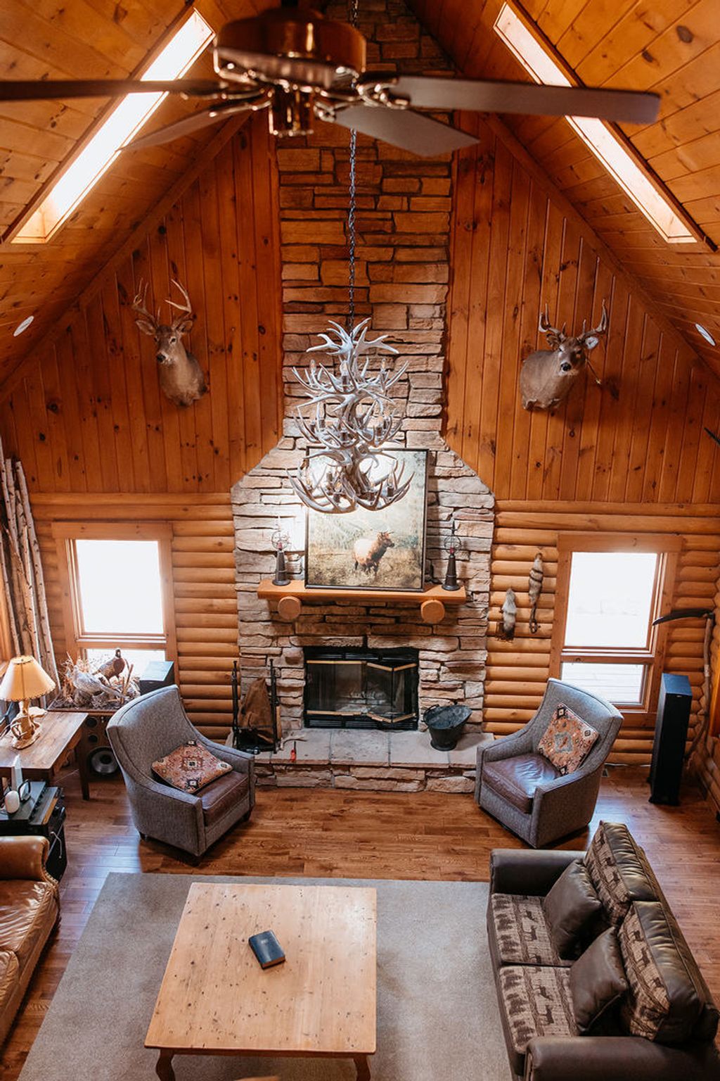 Luxury cabin and Chalet guest house overlooking a pond with 40 acres of stunning Jo Daviess County timber land. The 5000 sq ft real log cabin and 1100 sq ft Chalet guest house were made to entertain and house a large family or group of friends. The large master suite is on the main floor with 2 more large bedrooms upstairs and another bedroom suite in the finished basement. The kitchen is large and spacious with both a dining nook/eating area and a large formal dining room off the great room. The large great room is open to the second floor with a beautiful real stone fireplace as the center piece of that room. As mentioned, the finished basement is ready for action with game tables, TV area and wet bar, as well as a wood burning stove to keep things cozy on cold nights. There is also a large and beautiful limestone patio area with campfire pit off the side of the cabin overlooking the pond and timber. The Chalet guest house may be the coolest part of the whole deal as it can be accessed through an enclosed walkway from the main cabin and has its own private access separate from the house as well. The Chalet is basically a large suite with its own bedroom, bathroom and kitchen as well as another wood burning stove to cozy things up on winter nights. There is a huge 3 car garage under the Chalet for vehicles and storage. Perhaps the most amazing thing about this entire package is that the entire property is set up to operate completely off the grid with Solar panel and generator system to run everything. No electric bill, no water bill, completely self-sufficient property and with brand new roofing on cabin and Chalet. There is also a 30 x 40 ft log barn/garage with concrete floors, insulated and heated with plenty of room for more vehicles, tractors and toys as well as a workshop area. Last but not least is the gorgeous 40-acre parcel included in this sale. The pond has been mentioned already which is loaded with fish that are easy to catch and the pond has been lined with rocks and an air pump installed to keep water moving. The timber is classic Jo Davies County rolling hills and valleys with mowed trails throughout for hiking and access to hunting locations. The hunting for both deer and turkey on this property is not just good it is excellent, outstanding, way above average. The property and this area in general have high deer numbers and there are some huge bucks living on this 40 acres. They are seen from the cabin on a regular basis! The property is licensed for AIRBNB and books up immediately whenever the owners want to rent it and all the reviews of the guests are top with many 5-star reviews. There is nothing on the market in Jo Daviess County like this property right now so call today to set up a private showing while it is still available!