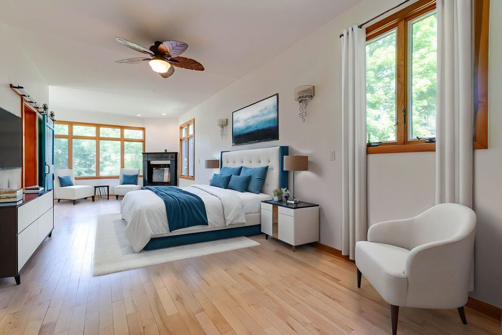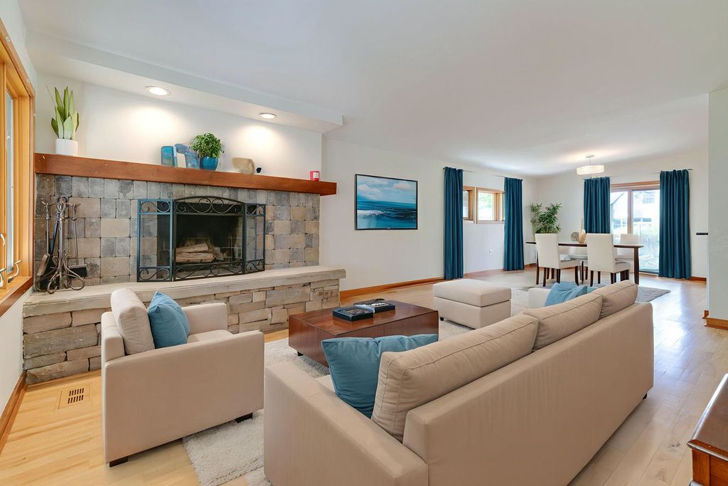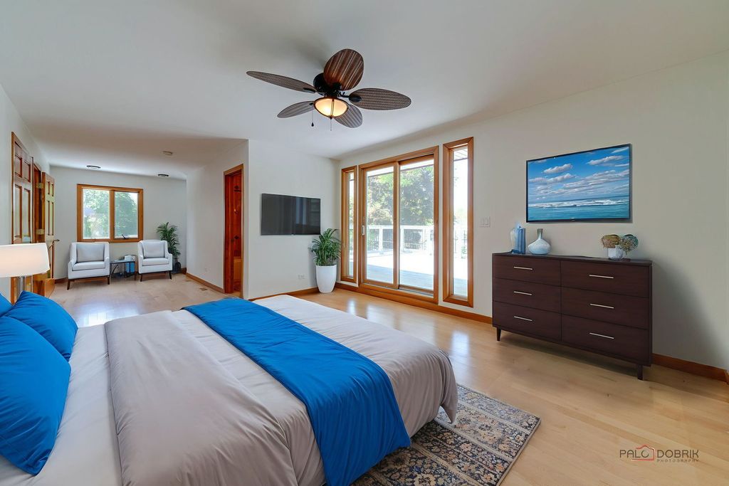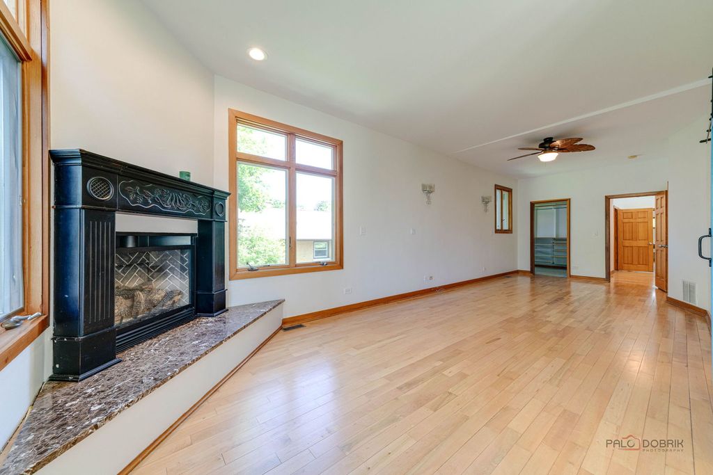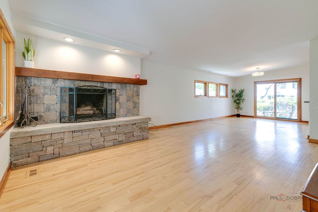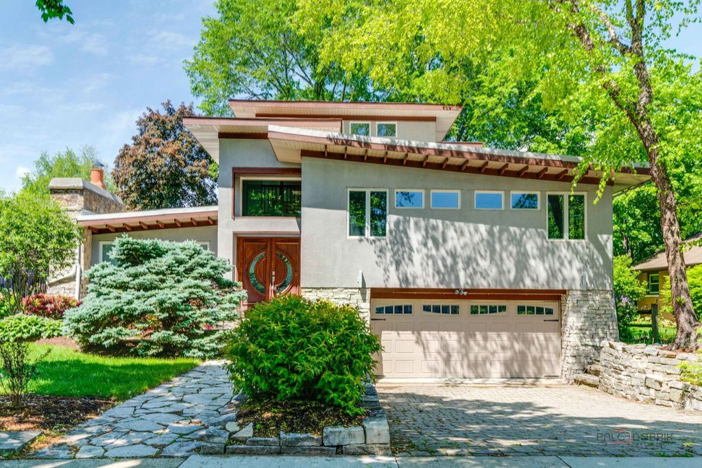 This stunning tri-story home presents a rare opportunity to own a spacious and stylish retreat in one of Libertyville's most sought-after neighborhoods. Designed to inspire, this residence blends contemporary luxury with mid-century modern influences, creating an inviting space ready for your personal touch. Featuring four generously sized bedrooms and four and a half baths, the home is built for comfort and sophistication. The top-floor suite is a private oasis, including a full bath, walk-in closet, and a rooftop deck. This bedroom offers a versatile space for guests or relaxation. The interior of the home has been freshly painted. Soaring ceilings and abundant natural light enhances the open-concept design, complemented by elegant hardwood floors. The primary suite provides direct access to a multi-level patio with a pergola, an ideal setting for outdoor entertainment. The spa-like en-suite bath in the primary bedroom features double sinks, a double shower, and ample storage. Enjoy entertaining in a spacious kitchen complimented with stainless steel appliances and a designated eating area. Each floor is anchored by a cozy fireplace, creating a welcoming ambiance year-round, and the zoned HVAC system ensures optimal comfort. The finished basement provides walk-out access to both the front and back yards, adding even more functional living space. Continue the entertainment with a fenced in yard and patio. Located just steps from Libertyville's top-rated schools, shopping, dining, and easy transportation access, this exceptional home is a rare find. Don't miss the chance to make it yours!