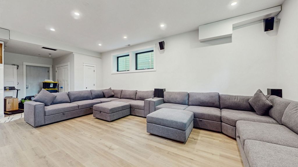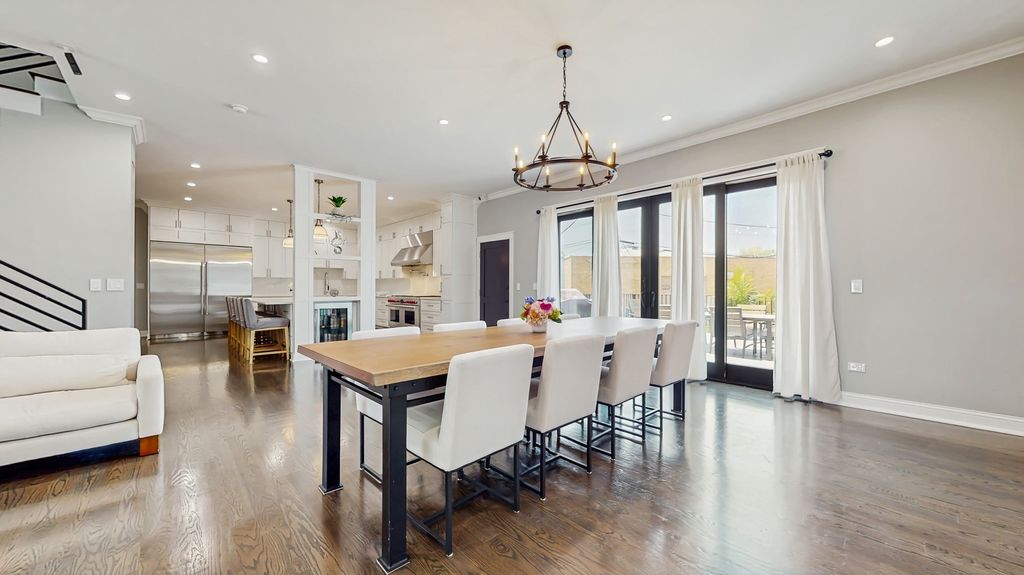 Newly built in 2023, this stunning contemporary farmhouse offers a relaxing, welcoming atmosphere with timeless appeal. Custom-built by the contractor/owner for his family. This 5-bedroom, 3.5-bath, single-family, two-story home provides privacy and security for all who live there. The home boasts four-inch plank red oak floors throughout, a custom-designed kitchen with a plethora of custom cabinetry, a ten-foot island, quartz countertops, stainless steel appliances including a next to new 60-inch WOLF 6 burner stove, dual griddle, double oven, a 36 inch Sub-Zero refrigerator with a 36 inch Sub-Zero Freezer, a strategically placed SUB_ZERO 24-inch beverage center, a WOLF 30-inch drop down door microwave, and COVE dishwasher. The spacious open living and dining room allows for relaxing, entertaining, or extended indoor family time. The floor-to-ceiling Climate Guard Aluminum windows allow plenty of light. The sliding glass doors lead to a 20 x 20 composite deck, custom-cut with a steel frame, and a large yard featuring a 20 x 25 brick patio protected by a 6-foot custom-made privacy fence. Top-of-the-line gas fire pit included. Excellent for entertaining. The full, finished basement holds the fifth bedroom, the family room, and a custom-built bar. The primary bedroom features 14-foot ceilings, his and her walk-in closets, and a master bath with marble tile. Custom wood cabinetry, crafted by a master carpenter, is also present throughout the house. Fixtures are Kohler-Purist. There are three heating zones, one in the garage and two separate cooling zones for the home, including a tankless water heater. The front entry door was custom-made on-site, measuring 8 feet by 48 inches in width. Ample attic storage. All walls and ceilings have 30K of spray foam insulation.