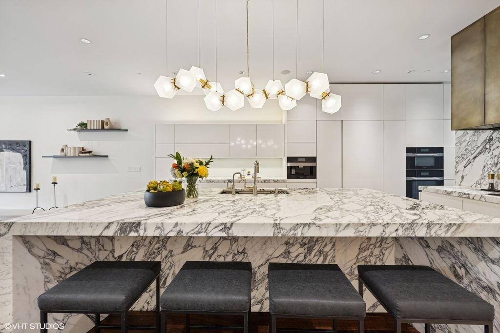 Located in the heart of Lincoln Park on one of Chicago's most coveted tree-lined blocks, 1837 N Fremont is a custom-crafted single family home originally constructed by Chicago's boutique luxury home builder, Crescent Rock Builders and designed by Studio Dwell. In its recent, full main floor renovation led by awarded Chicago designer Donna Mondi, walls were removed, floors redone, a new fireplace installed, artisan-crafted wallpapers were applied, and more. The kitchen also underwent a full rehaul with no detail spared - new Miele appliances, custom quartz, hand-polished lacquer cabinetry abound. The top-of-the-line kitchen leads to an expansive family room, complete with a NanaWall glass door system which opens the space entirely to welcome the rear terrace for impeccable indoor/outdoor living. As you enter the home, the multi-level living room meets the stair atrium, exemplifying the home's open aesthetic. The rarely-found, two-story front window allows for an abundance of natural light throughout the home. Wide plank walnut flooring and ultra high-end finishes span each level. The second floor offers 3 bedrooms, a full bath and laundry room, followed by a serene primary suite located on the home's third level. The primary suite features a dressing room, walk-in closet, private green roof terrace, and luxurious bathroom complete with steam shower and a Miele stainless stackable washer/dryer. Up to the top floor is the home's rooftop, boasting absolutely stunning views of the city. The rooftop terrace is fully equipped with a custom, stainless steel outdoor chef's kitchen including a dumbwaiter that travels down to the home's main kitchen--the definition of rooftop entertaining with ease. The modern residence's lowest level houses a media room, lounge, full guest suite, and a climate controlled wine cellar following a stone garden. Furthermore, 1837 N Fremont features whole-home automation by Savant System, hydronic solar panels, hydronic heated floors on all levels, and a radiant-floor heated two-car garage that has its own, additional roof deck. This stunning home in an unbeatable location--only one block from Armitage with endless shopping and dining options--is unmatched when it comes to complete sophistication and modern comforts.
