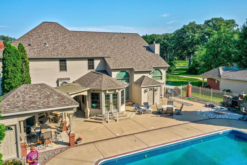 Welcome to this exquisite one-of-a-kind home boasting great craftmanship and stunning cherry woodwork throughout. This home showcases attention to detail with built-ins and custom finishes. Step inside and be greeted by the grand two-story foyer. The spacious family room features soaring ceilings and cozy fireplace. The gourmet kitchen is a chef's dream, featuring a large 14 foot granite island with seating for 9 stools. The nearby dining room is great for hosting nice dinner parties and open design to living room. Escape to the luxurious master suite, complete with private lounge area, spa like bathroom, 2 large walk-in closets and balcony overlook to lower level. Private office located left of foyer allows a great working environment while enjoying front surrounding landscape views. Entertain in style with the outdoor oasis that awaits you. The pool offers refreshing retreat with outdoor bars and grilling area and convenient outdoor pool bath. Cozy up to the outdoor fireplace and enjoy the outdoor gazebo. Second entrance to lower-level basement leads to recreation room, kitchenette and great second family room area. Don't miss the opportunity to own this truly great home where luxury and comfort seamlessly blend. Schedule your private showing today.