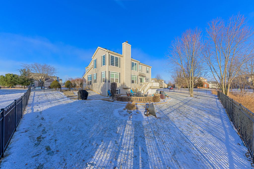 Welcome to this exquisite and impeccably maintained 2-story home in the highly sought-after Linden Estates of Aurora, offering over 4,300 square feet of finished living space. Ideally located just minutes from I-88, the Metra, splash parks, Gilman Trail, the scenic Fox River, and an abundance of shopping, dining, and parks, this home delivers exceptional convenience and lifestyle. The beautifully upgraded interior features white trim and doors, custom moldings, hardwood flooring, elegant pillars, and rounded corners. Volume ceilings, custom window treatments, and grand room sizes enhance the home's refined yet welcoming atmosphere throughout. The main level offers a formal living room and dining room with impressive scale, a stunning custom kitchen, and a warm, inviting family room highlighted by a vaulted ceiling and cozy fireplace. The second floor features four generously sized bedrooms, including a luxurious primary suite with vaulted ceiling, two walk-in closets, and a spa-inspired bath. The finished basement provides an exceptional related-living opportunity with a bedroom, full bathroom, second kitchen, and an expansive recreation room. Enjoy serene nature views from the fenced backyard, complete with a paver patio, deck, professional landscaping, and a lawn irrigation system. Additional highlights include a 3-car garage with epoxy flooring and a new roof (2024). A rare opportunity to own a truly remarkable home in a phenomenal location.