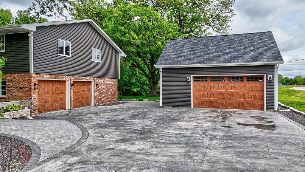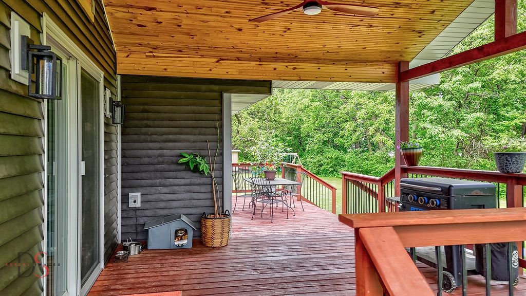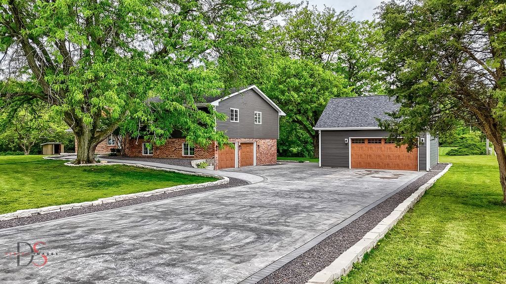 Step into luxury with this breathtaking 4-bedroom, 3.5-bath home perfectly situated on a beautifully landscaped 1-acre plus country lot in the desirable Pine Hills Subdivision near Pine Hills Golf Course. This stunning property has been completely remodeled with no detail overlooked. Step inside through the one-of-a-kind round foyer, a striking architectural feature that sets the tone for the custom design and craftsmanship found throughout the home. You'll find a custom kitchen featuring custom Woodhill Cabinetry, modern quartz countertops, a spacious island, and all-new high-end stainless appliances-ideal for both everyday living and entertaining. Just off the kitchen is a coffee or wine bar complete with a beverage refrigerator, creating the perfect transition into the spacious living room. The huge living room showcases a brick wood-burning fireplace, offering warmth and charm. From there, step down into the inviting dining room, where patio doors lead to a extended deck-ideal for outdoor dining. The deck flows into a brand-new covered porch, creating a seamless connection back into the kitchen-perfect for entertaining. Every bathroom in the home has been professionally redone, including the addition of a brand new full and half bath to enhance functionality. The primary suite offers a luxurious retreat with a spa-inspired bathtub and separate large shower. Two additional full baths are conveniently located next to bedrooms on every level, providing comfort and privacy for family and guests. The home includes a well-appointed laundry room with a utility sink and an exterior door to the backyard, offering easy access for outdoor clean-up and added convenience. Head downstairs to discover an amazing recreational room in the finished basement-complete with a pool table, fireplace, bar for the ultimate hangout space. There's also plenty of storage to keep everything organized and out of sight. An attached 2 car garage plus additional storage space. The property also includes a brand new detached garage with an upper loft that adds versatile space-perfect for a workshop, studio, or storage. Outdoors, enjoy the newly built covered deck overlooking the expansive yard, framed by professional landscaping and new brick path down to a firepit. A brand new concrete stamp driveway the enhances curb appeal. This is a rare opportunity to own a move-in ready home where craftsmanship and design meet peaceful rural living.
