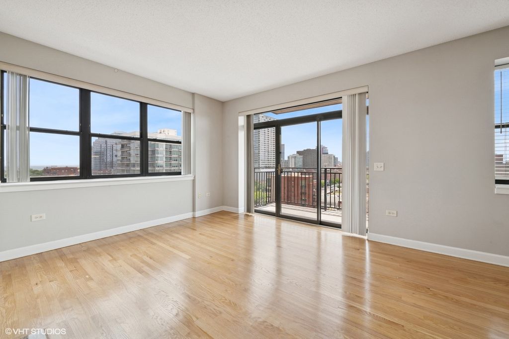 .Fantastic sunny corner 2 bed 2 bath with amazing views of the lake! This split floor plan has hardwood floors, a gas fireplace, 42 in cabs w ss appliances, a spacious master suite w double vanity in bath, and a separate shower & soaking tub! W/D in unit & oversized balcony! Full amenity building with 24hr doorperson, workout facility, business center & mgmt on site. Walk to everything South Loop offers- train, Jewel, restaurants. A deeded indoor parking spot is an additional $15,000!