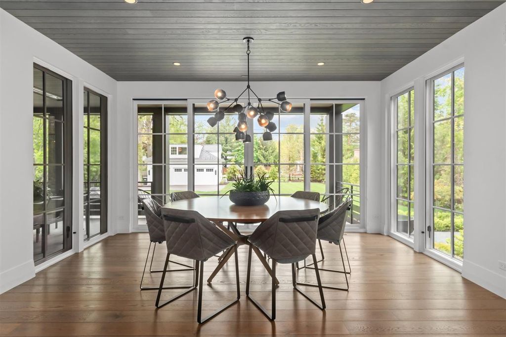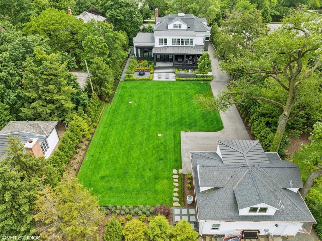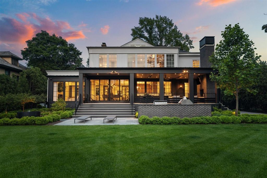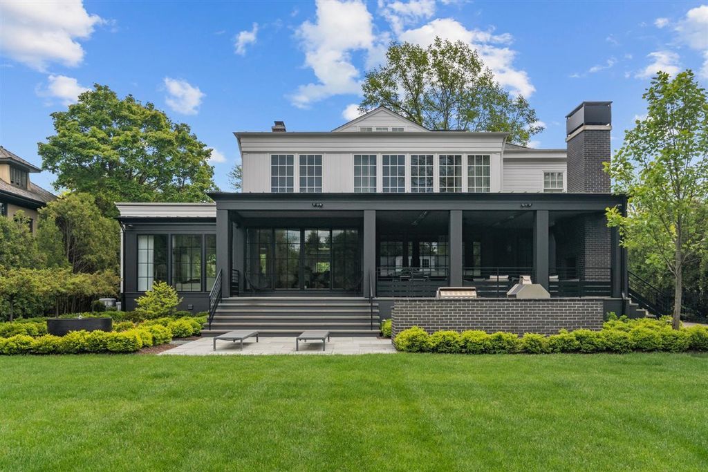 Historical Character meets Elegant Modern Living! Experience the best of Kenilworth in this perfectly located historic home one block to the beach, schools, town, and trains. Originally built in 1896 by renowned architect Franklin Pierce Burnham, it was completely gutted and reborn in 2022 as a stunning showcase of customized modern design while maintaining its classic charm. As you enter through the original facade, the elegant staircase and vintage French oak floors welcome and guide you through the open floor plan. Once inside, you'll find the formal dining and living rooms. Custom steel and glass cabinets lead the way to the heart of the home. The open floor plan of the kitchen, breakfast and family rooms spans over 1500 sq. ft., and were perfectly designed for daily life and entertaining. A Roll & Hill pendant light hangs over the beautiful 14 ft. Paonnazzo marble island in the kitchen, which includes custom cabinetry, high-end Subzero and Wolf appliances, and a Galley workstation to keep the main kitchen area free of clutter. Floor to ceiling windows make up the entire back of the home, filling the space with natural light and offering views of the meticulously landscaped backyard. On the second floor, you will find the first-class primary suite, with an opulent spa-like ensuite bath featuring a glass-enclosed shower, soaking tub, and dual vanity. A pair of luxurious, expansive walk-in closets with built-in shelves provide ample storage space. Two additional oversized ensuite bedrooms are joined by a lounge area that can be closed off with sliding doors for extra privacy for work or play. Just a few steps up the open staircase, the third floor boasts two more bedrooms and another bathroom with dual vanity. The lower level has something for everyone: a spacious family room, game room, media room perfect for movie nights, gym, 500+ bottle wine cellar, an additional bathroom, and plenty of storage. Outside, the impressive covered patio acts as a cohesive extension of the home with a large sitting area, complete with a fireplace and ceiling heaters to allow for exceptional indoor/outdoor living year-round. The backyard also has a kitchen area with a barbecue and pizza oven, ideal for gatherings with family and friends. Above the heated three-car garage is a bedroom/office plus bathroom - use it for a private workspace, extended visitors, or however else you see fit. No details were overlooked when renovating this home to maintain its timeless elegance with modern comfort. Only the finest materials were used, with several custom pieces to create the perfect fit. A Control4 home automation system has also been installed for the ultimate peace of mind. You don't want to miss out on this one