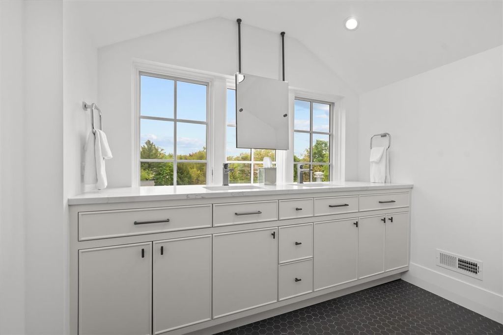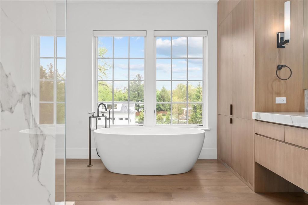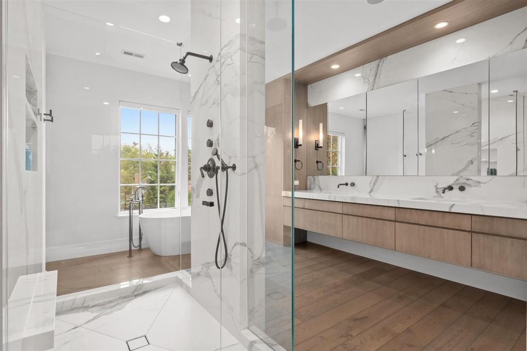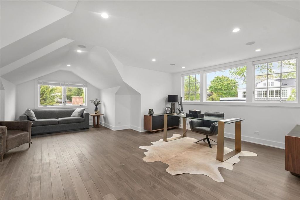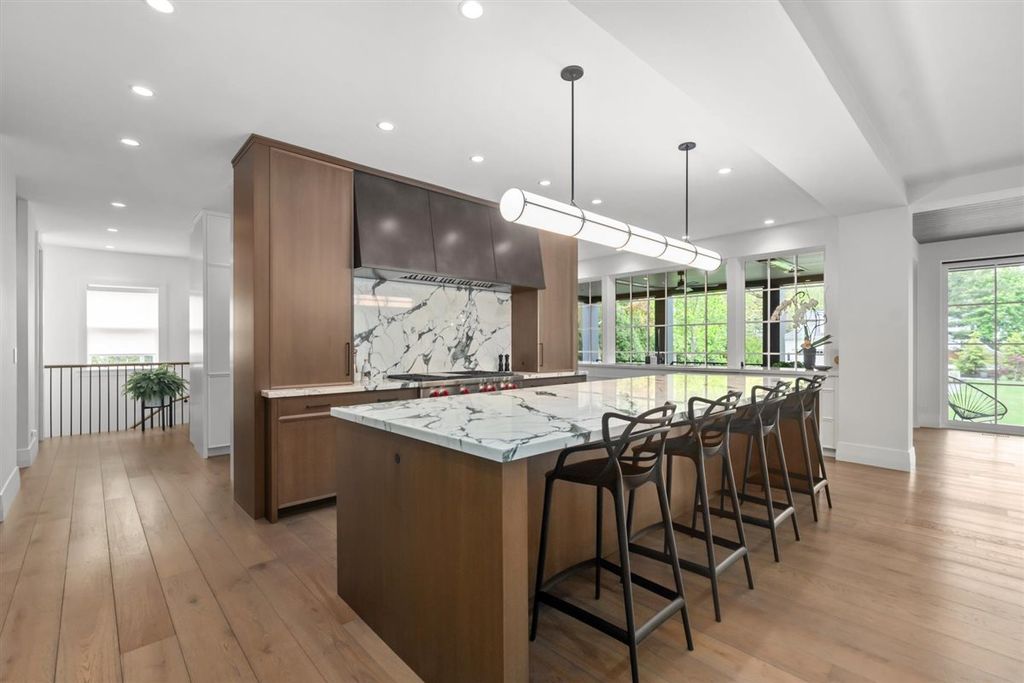 Historical Character meets Elegant Modern Living! Experience the best of Kenilworth in this perfectly located historic home one block to the beach, schools, town, and trains. Originally built in 1896 by renowned architect Franklin Pierce Burnham, it was completely gutted and reborn in 2022 as a stunning showcase of customized modern design while maintaining its classic charm. As you enter through the original facade, the elegant staircase and vintage French oak floors welcome and guide you through the open floor plan. Once inside, you'll find the formal dining and living rooms. Custom steel and glass cabinets lead the way to the heart of the home. The open floor plan of the kitchen, breakfast and family rooms spans over 1500 sq. ft., and were perfectly designed for daily life and entertaining. A Roll & Hill pendant light hangs over the beautiful 14 ft. Paonnazzo marble island in the kitchen, which includes custom cabinetry, high-end Subzero and Wolf appliances, and a Galley workstation to keep the main kitchen area free of clutter. Floor to ceiling windows make up the entire back of the home, filling the space with natural light and offering views of the meticulously landscaped backyard. On the second floor, you will find the first-class primary suite, with an opulent spa-like ensuite bath featuring a glass-enclosed shower, soaking tub, and dual vanity. A pair of luxurious, expansive walk-in closets with built-in shelves provide ample storage space. Two additional oversized ensuite bedrooms are joined by a lounge area that can be closed off with sliding doors for extra privacy for work or play. Just a few steps up the open staircase, the third floor boasts two more bedrooms and another bathroom with dual vanity. The lower level has something for everyone: a spacious family room, game room, media room perfect for movie nights, gym, 500+ bottle wine cellar, an additional bathroom, and plenty of storage. Outside, the impressive covered patio acts as a cohesive extension of the home with a large sitting area, complete with a fireplace and ceiling heaters to allow for exceptional indoor/outdoor living year-round. The backyard also has a kitchen area with a barbecue and pizza oven, ideal for gatherings with family and friends. Above the heated three-car garage is a bedroom/office plus bathroom - use it for a private workspace, extended visitors, or however else you see fit. No details were overlooked when renovating this home to maintain its timeless elegance with modern comfort. Only the finest materials were used, with several custom pieces to create the perfect fit. A Control4 home automation system has also been installed for the ultimate peace of mind. You don't want to miss out on this one