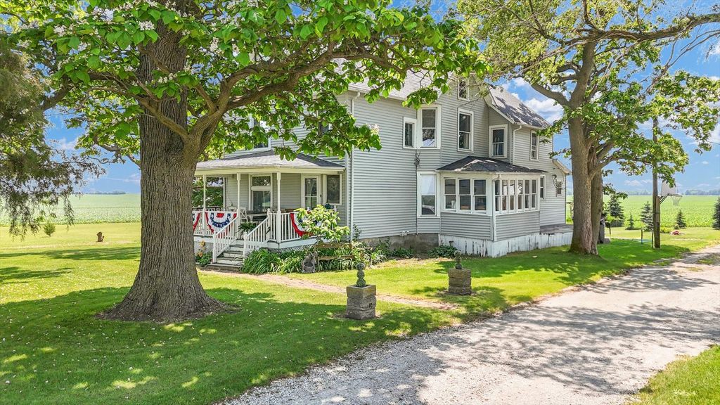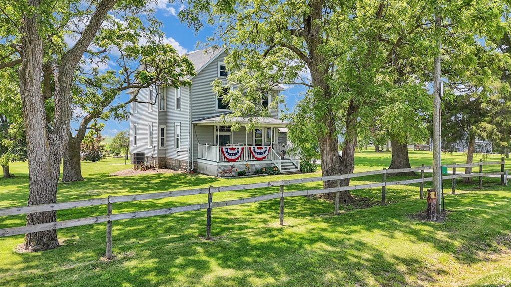Welcome to this spacious two-story farmhouse on 2 peaceful acres, just a couple miles east of Gibson City-offering the best of country living with easy access to town. With over 2,500 square feet of space, this home is full of original character, including beautiful woodwork, hardwood floors, and double-hinged doors in the dining and family rooms. The open staircase adds a warm focal point as you enter, and there's even a secondary staircase off the kitchen for added function and old-home charm. The main floor offers a remodeled kitchen, cozy living spaces, and a full bath for convenience. Upstairs, you'll find and a second full bathroom-perfect for a growing family, guests, or office/hobby space. The current owners have taken a lot of attention to Improvments since purchasing: New furnace, stove, and fridge in 2023, updated flooring in both upstairs bedrooms and bathroom, Plumbing replaced in upstairs bathroom, downstairs bathroom upgraded, extensive plaster work in the kitchen and front entry, light fixtures updated in both bathrooms and the front room, septic and water heater repairs completed in 2023, painting throughout, closet racks added, clean-up work done inside and out-land cleared on east side, fire pits removed/leveled, and the area behind the barn is in progress. Full-size fridge in the garage stays with the home. A charming front porch was added for relaxing evenings. Outside, the large 23.6' x 27.6' outbuilding offers endless possibilities for storage, workshop space, or hobbies. If you've been searching for a country home with space, updates already handled, and loads of potential to make it your own-this is it. Don't miss the opportunity to call this farmhouse your own!