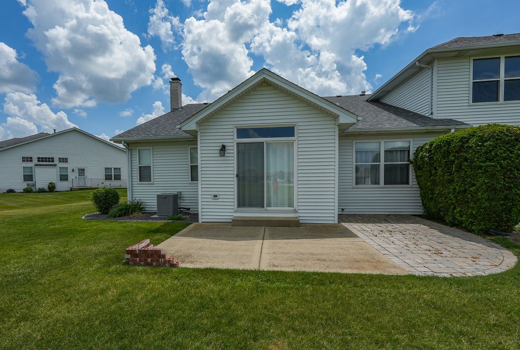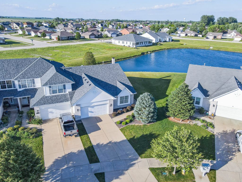 Immaculate one-owner ranch townhome-end unit with tranquil pond views! This beautifully maintained 3-bedroom, 2-bath home features a bright open floor plan with soaring cathedral ceilings, basement, and stunning views of the water. Built with numerous upgrades, it offers a spacious living room that flows into the dining area and kitchen, where sliding glass doors open to a large patio-perfect for relaxing or entertaining. The main-level primary suite includes cathedral ceilings, a generous walk-in closet, and a luxurious en-suite bath with dual vanities and a walk-in shower with bench. A cozy family room showcases a gorgeous wood-burning fireplace and provides plenty of space for additional seating and relaxation. Additional highlights include a first-floor laundry room with utility sink, attached 2-car garage, abundant storage throughout, and all appliances included. Enjoy maintenance-free living with no lawn care, shrub maintenance, or snow removal-conveniently located about 50 minutes south of Chicago, this must-see home offers the perfect blend of comfort, style, convenience, and low-maintenance living in a peaceful setting.